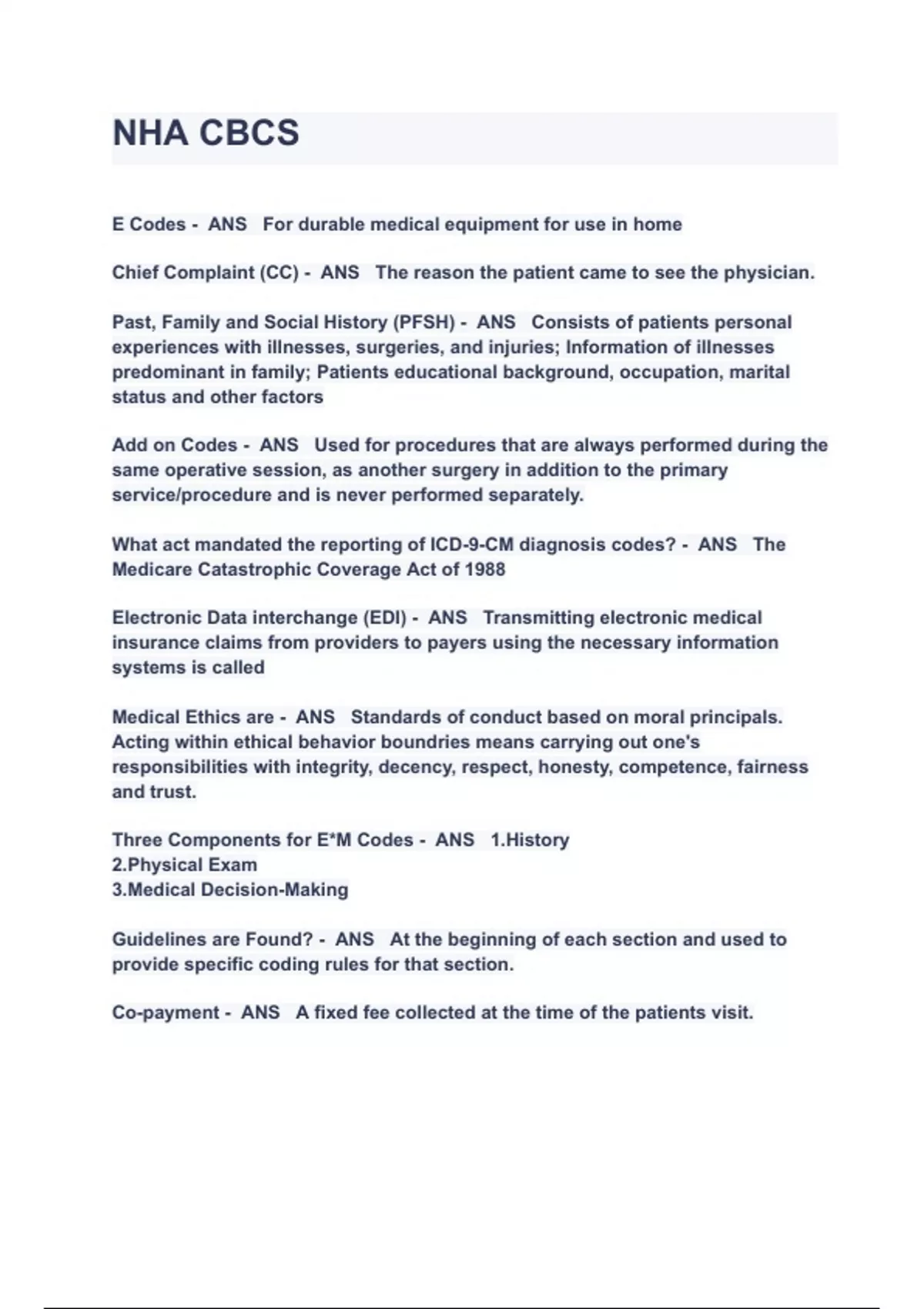 - NHA - Certified Billing And Coding Specialist
