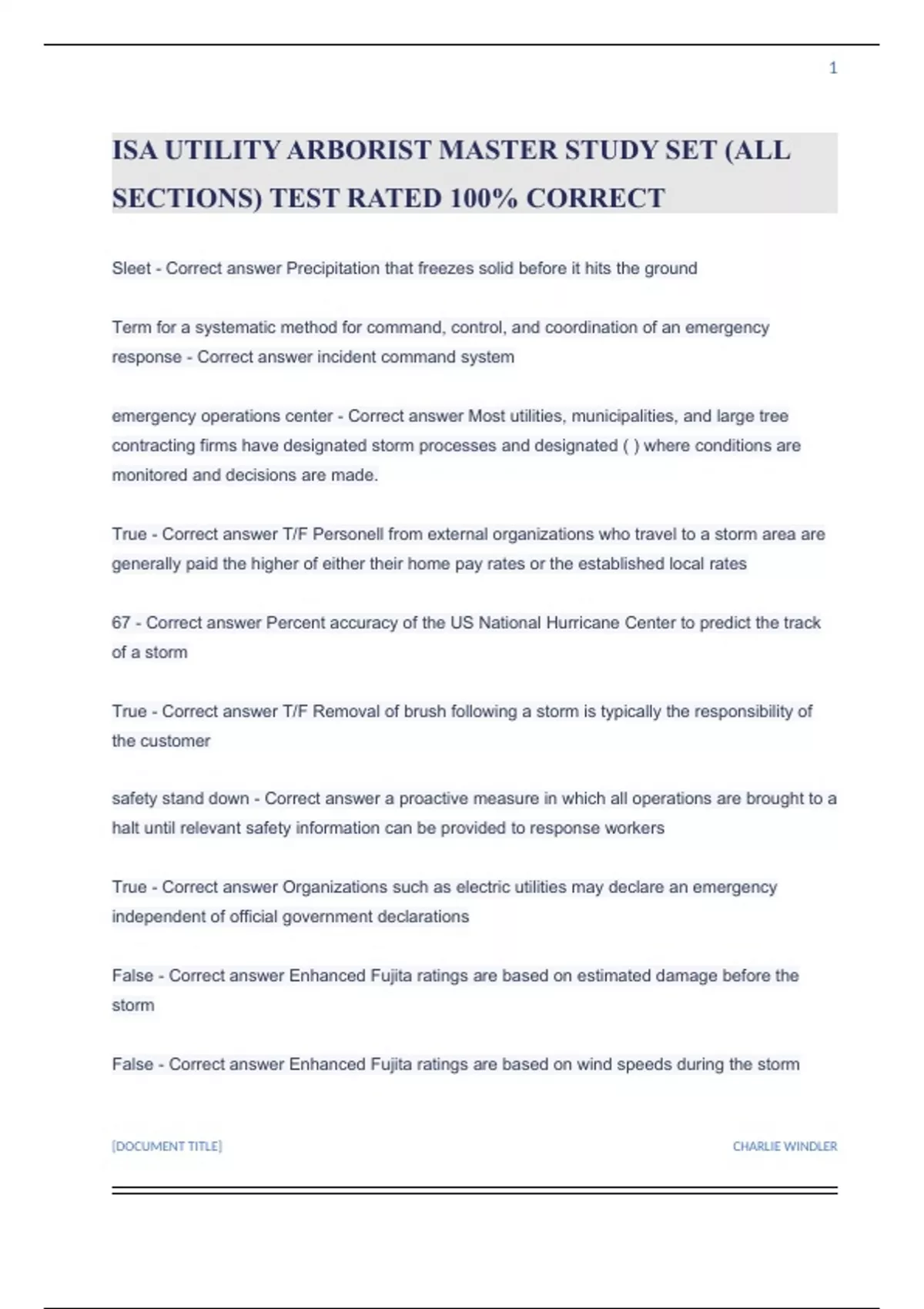 ISA UTILITY ARBORIST MASTER STUDY SET (ALL SECTIONS) TEST RATED 100% CORRECT