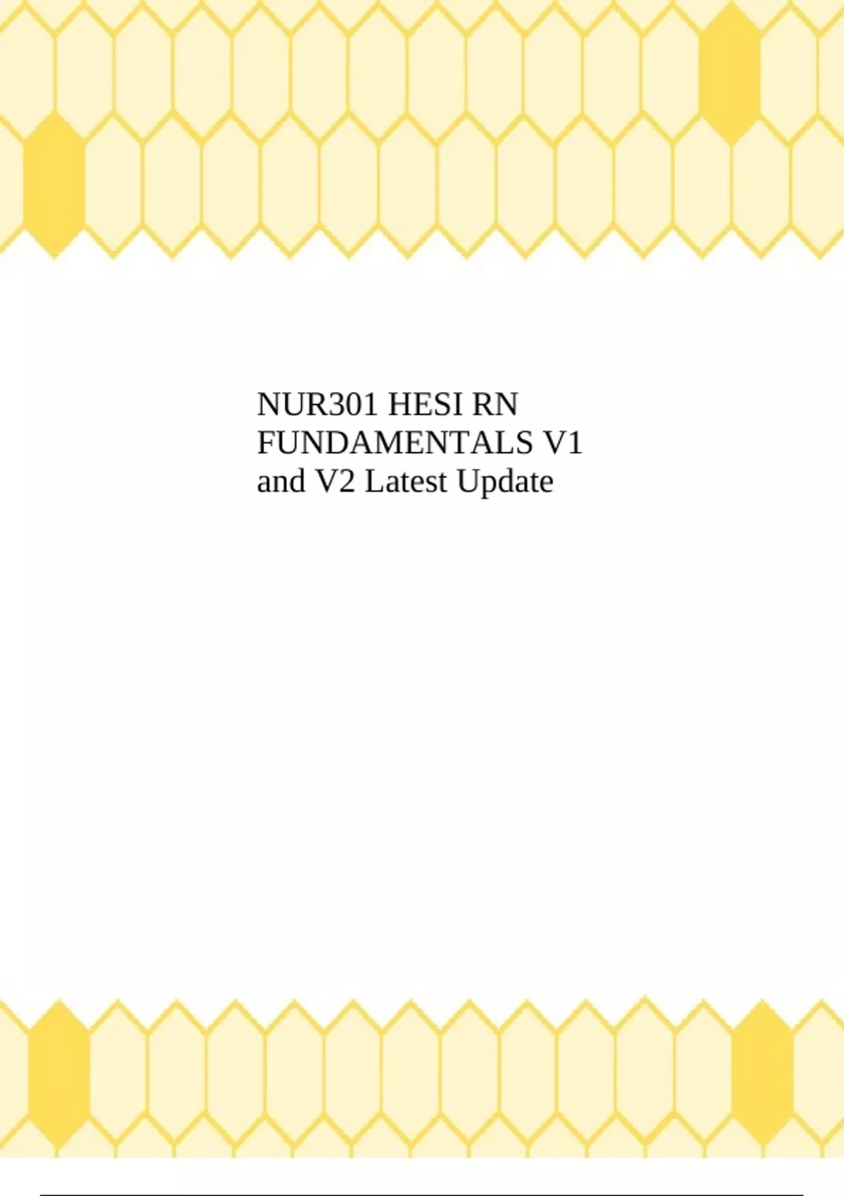NUR301 HESI RN FUNDAMENTALS V1 and V2 Latest Update