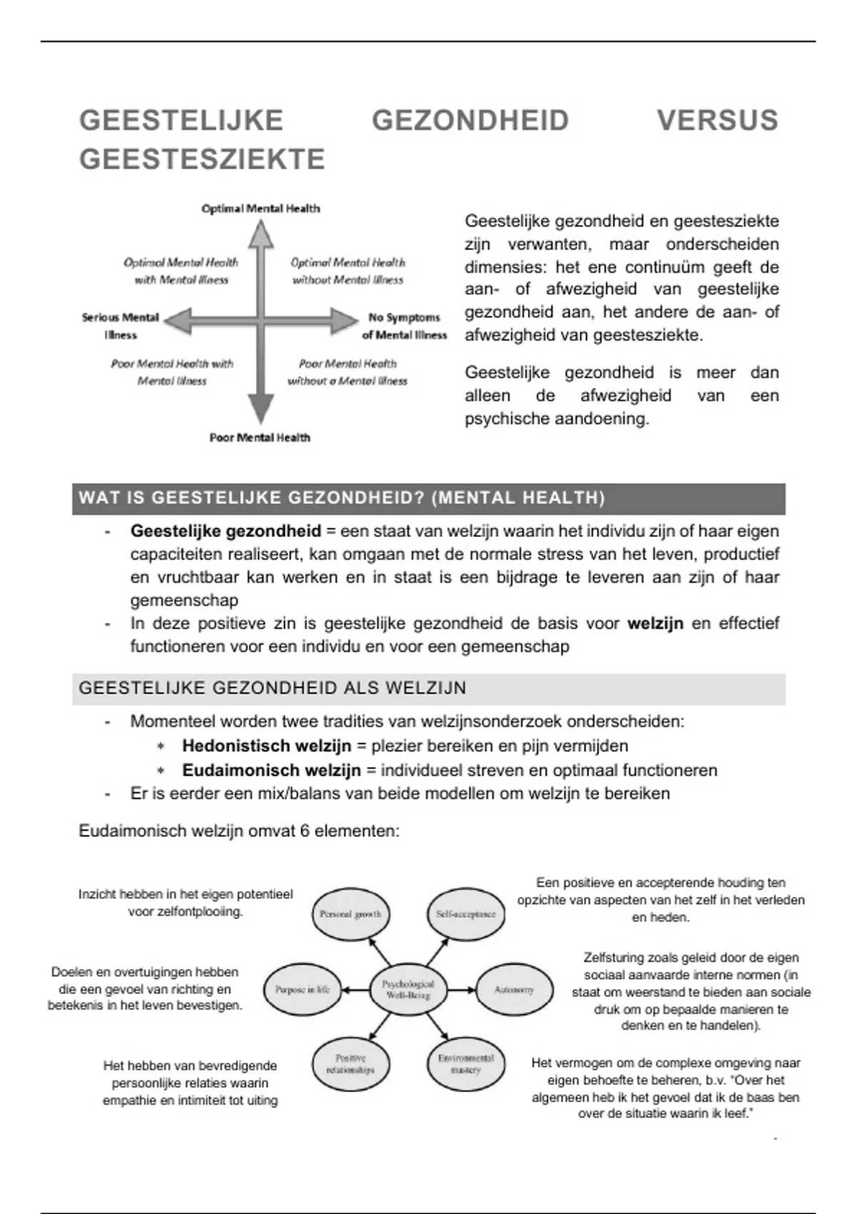 GEESTELIJKE GEZONDHEID ALS WELZIJN