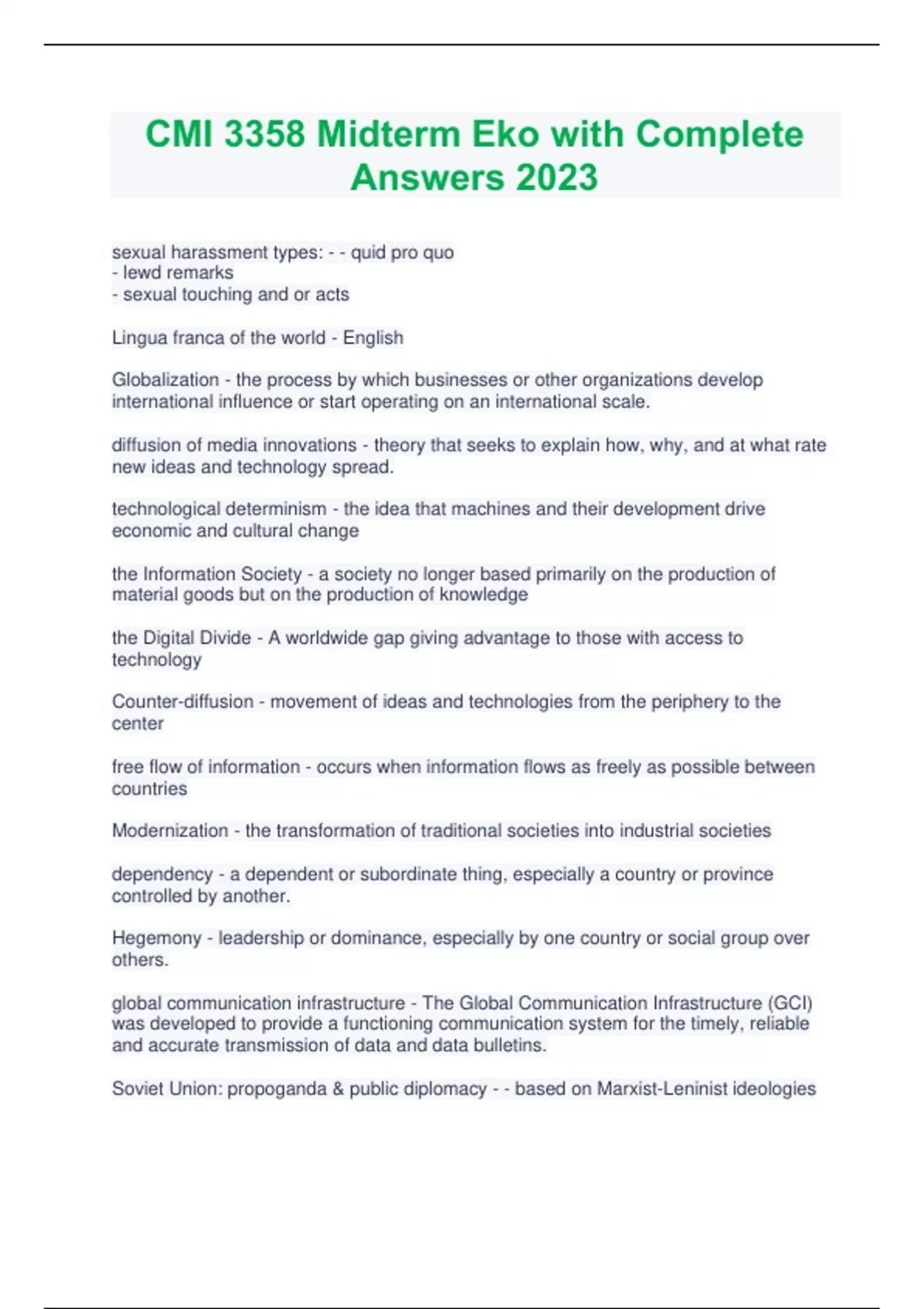 CMI 3358 Midterm Eko with Complete Answers 2023