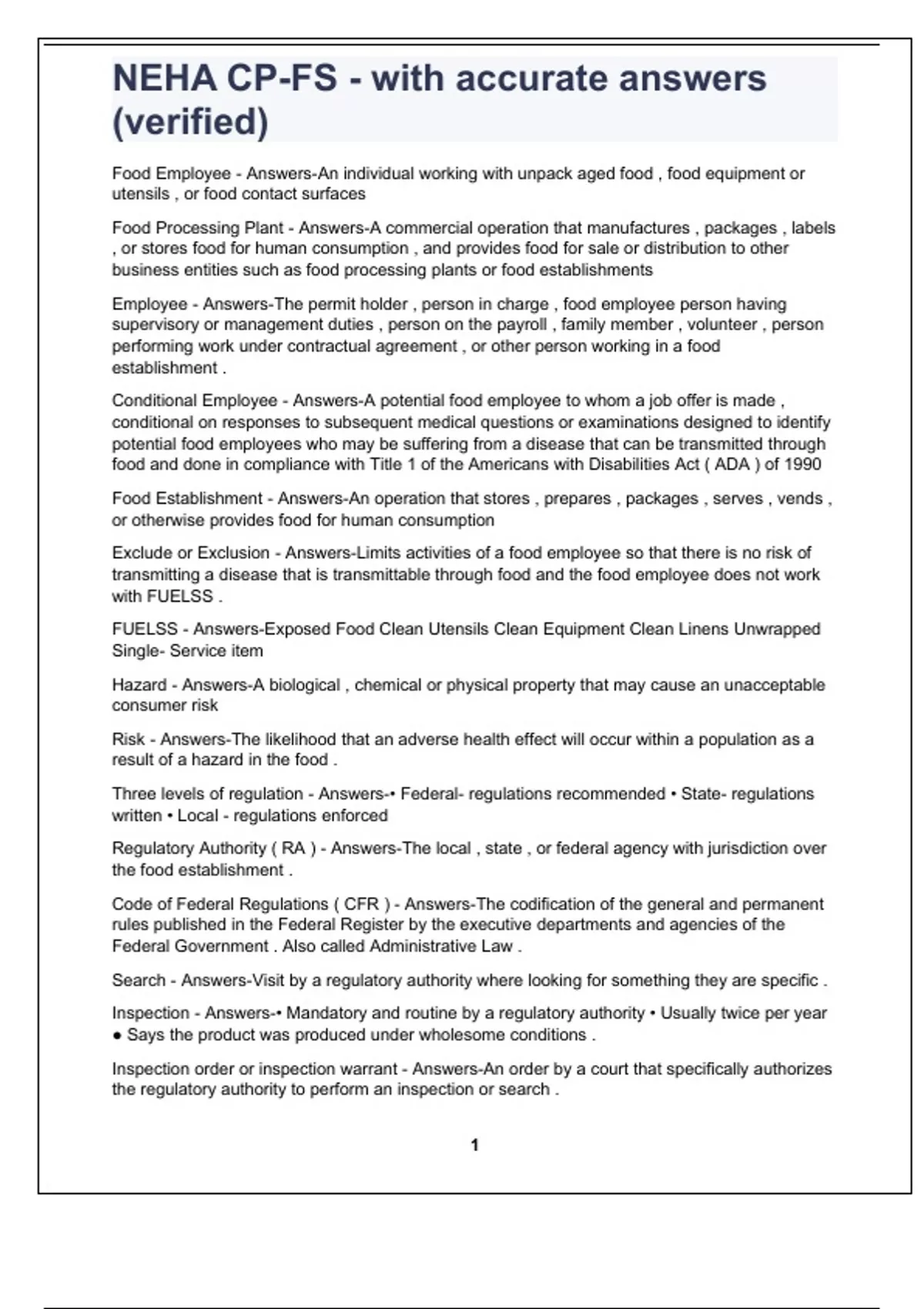 NEHA CP-FS - with accurate answers (verified)Graded A