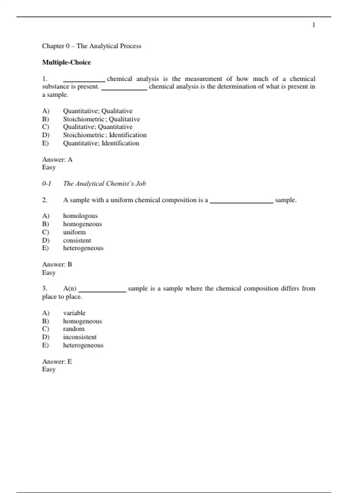 test bank for quantitative chemical analysis 10th