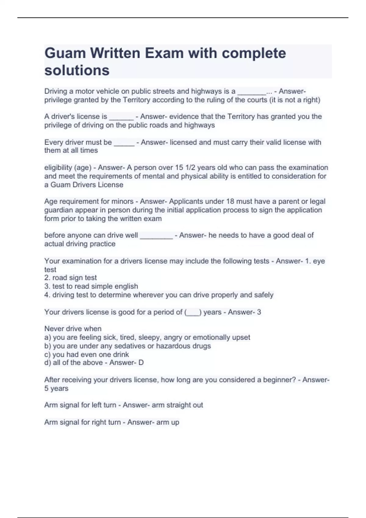 Guam Written Exam with complete solutions