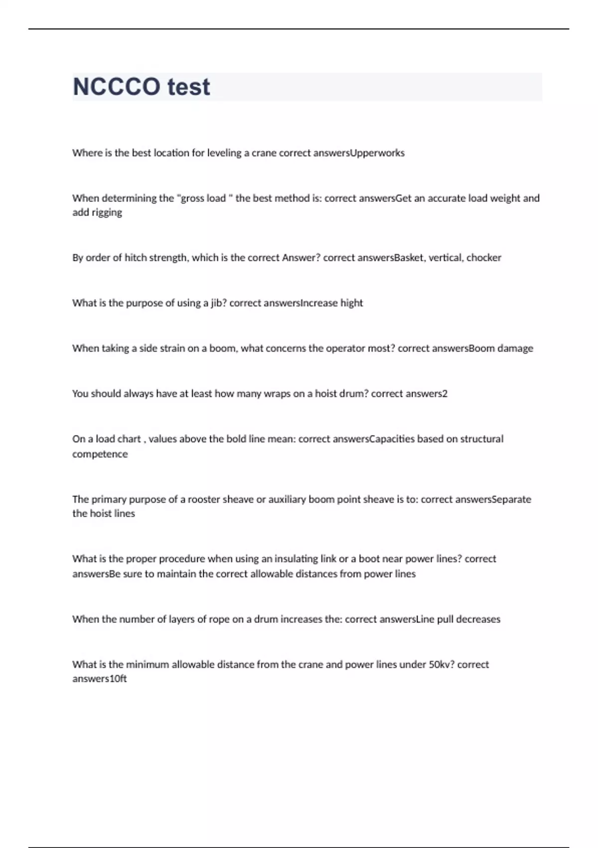 NCCCO test with verified solutions 2023