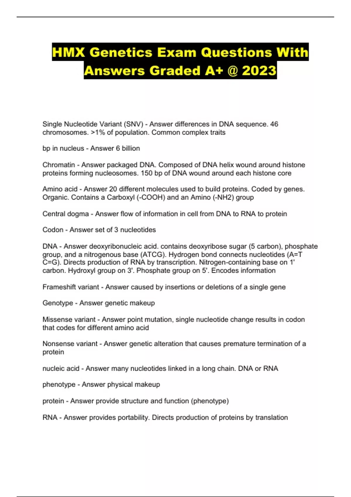 HMX Genetics Exam Questions With Answers Graded A+ @ 2023...