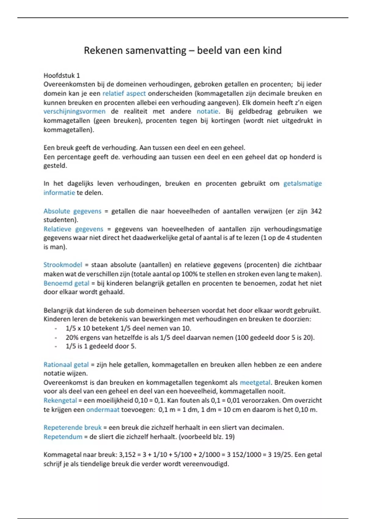 Samenvatting Beeld van het kind, rekenen-wiskunde