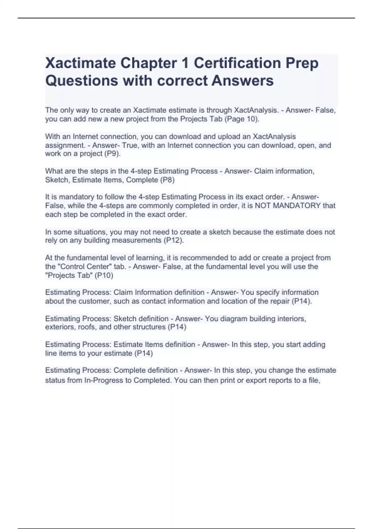 Xactimate Chapter 1 Certification Prep Questions with correct Answers