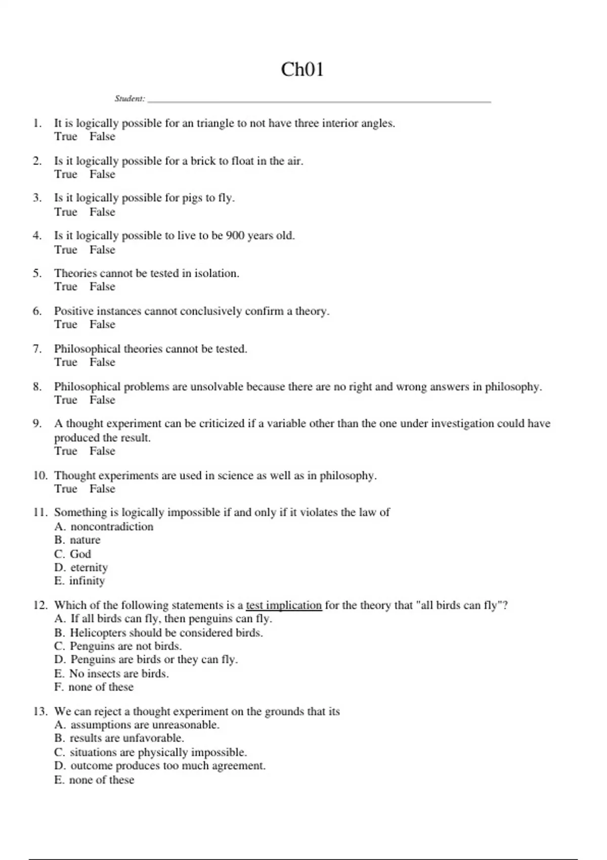 Supercharge Your Exam Preparation with the Exceptional [Doing Philosophy An Introduction Through Thought Experiments,Schick,5e] Test Bank