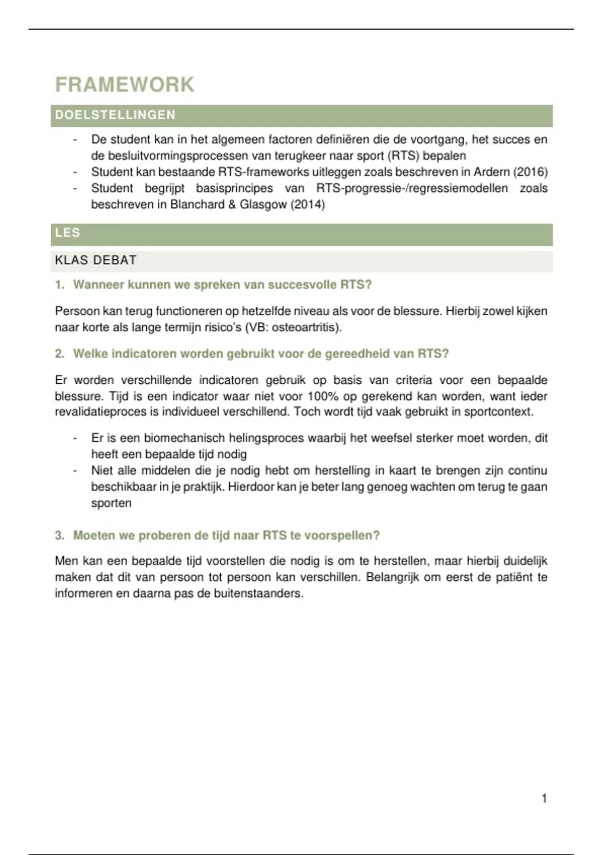 - Student kan bestaande RTS-frameworks uitleggen zoals beschreven in Ardern (2016)