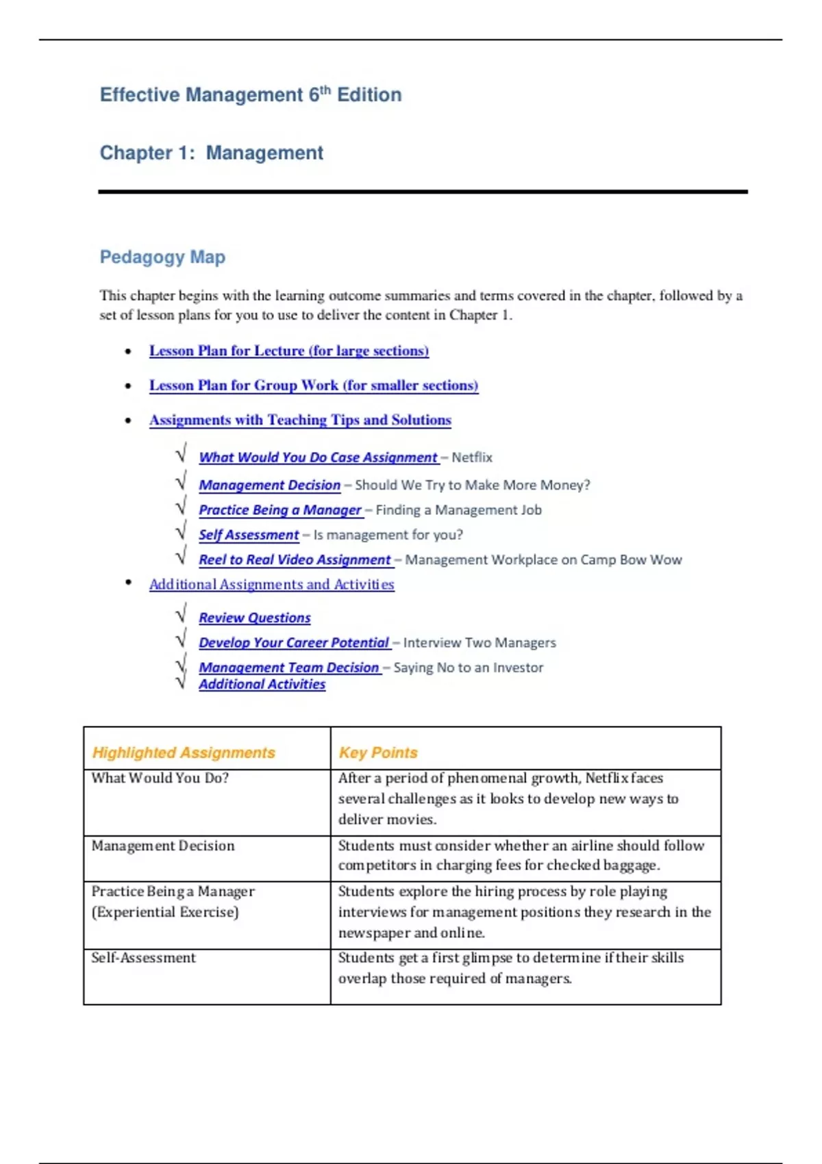 Highlighted Assignments Key Points