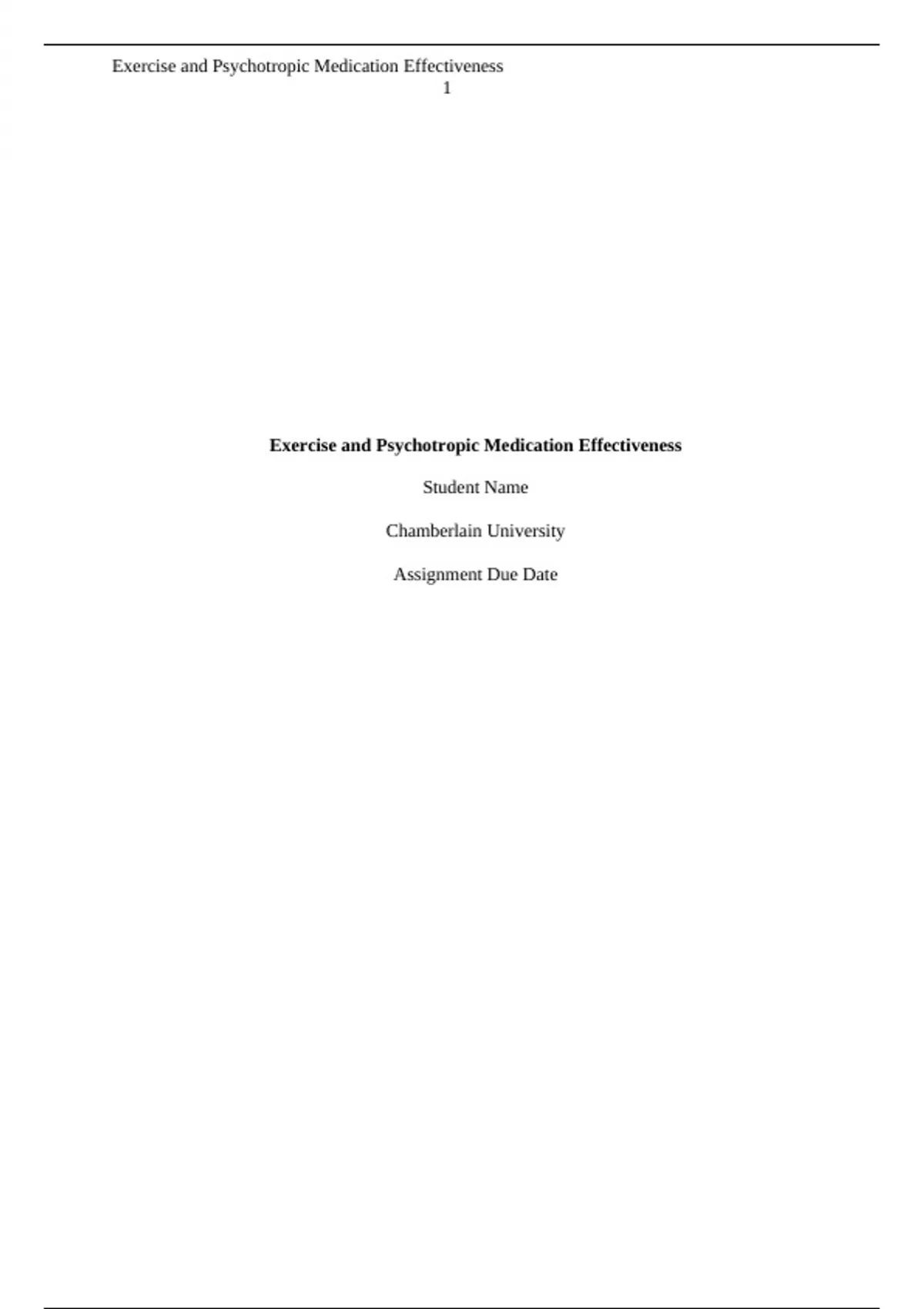 NR 541 Week 7 Assignment Network Presentation; Exercise and Psychotropic Medication Chamberlain