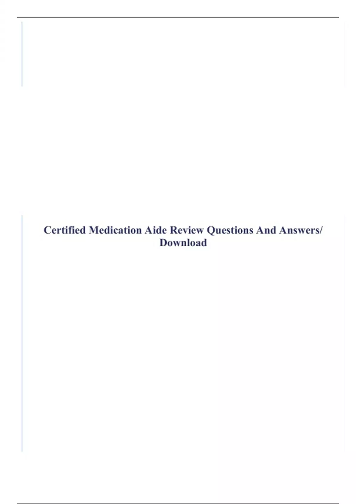 Certified Medication Aide Review Questions And Answers/ Download