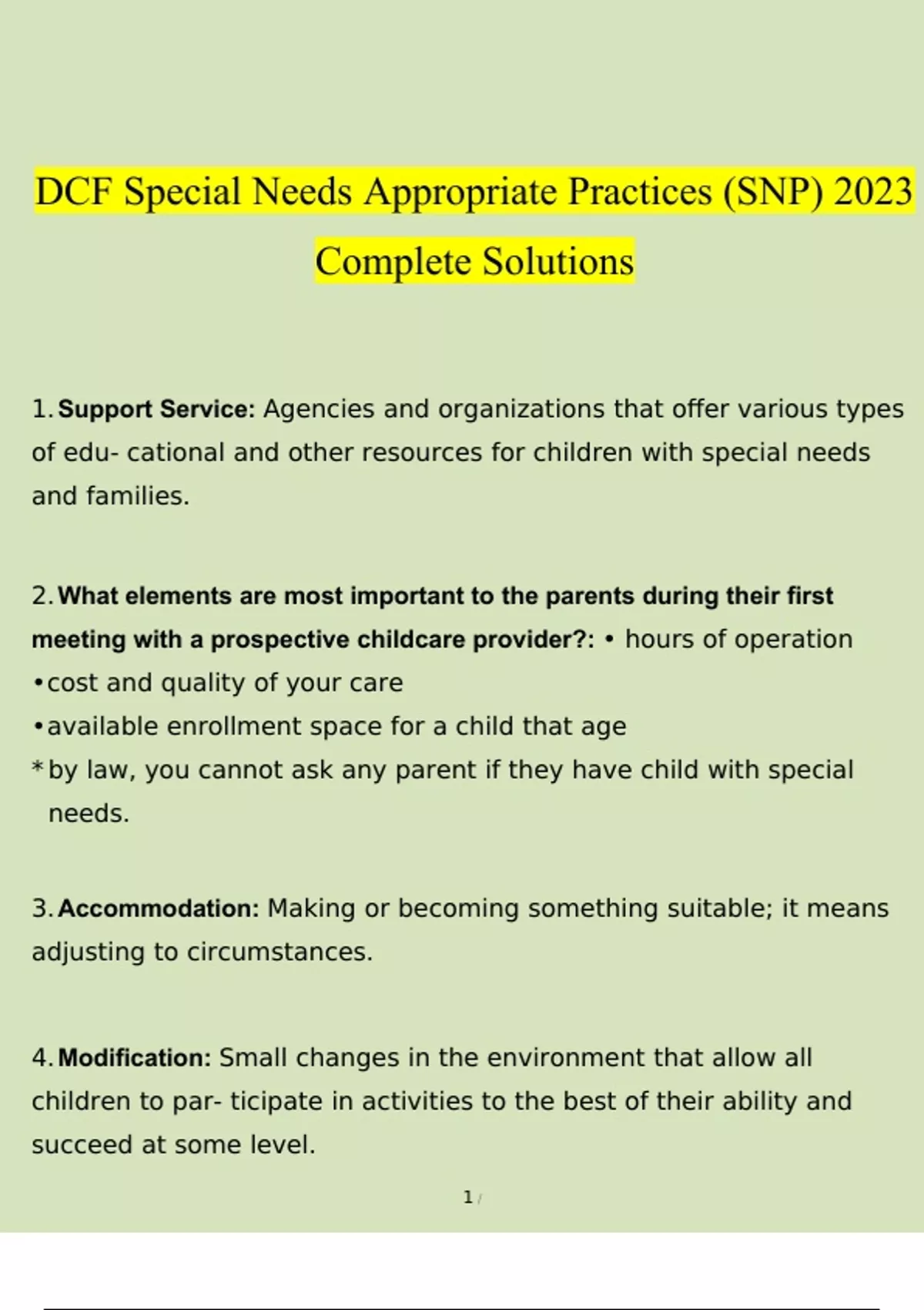 DCF Special Needs Appropriate Practices (SNP) 2023 Complete Solutions DCF Special Needs Appropriate Practices (SNP) 2023 Complete Solutions