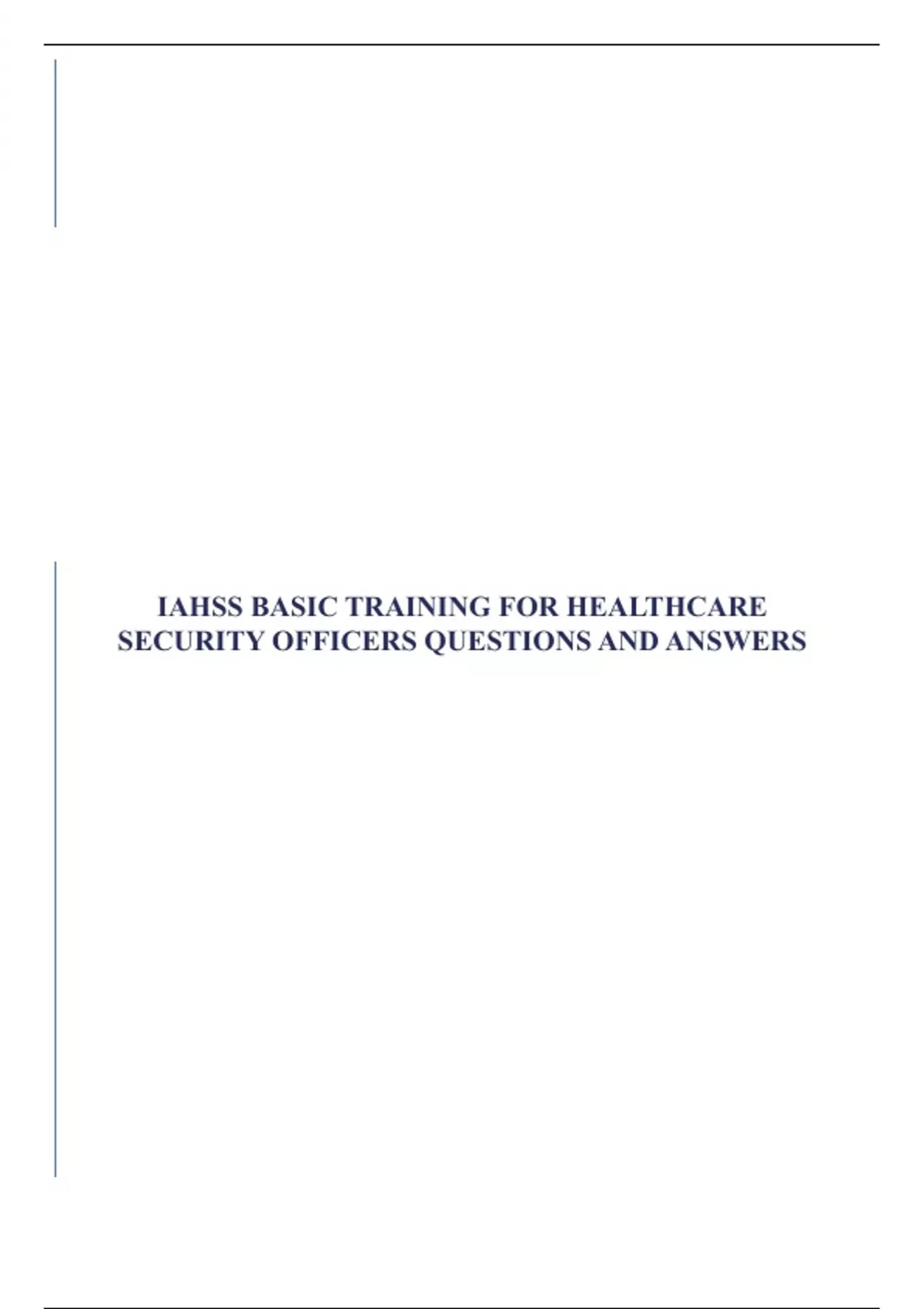 IAHSS BASIC TRAINING FOR HEALTHCARE SECURITY OFFICERS QUESTIONS AND ANSWERS
