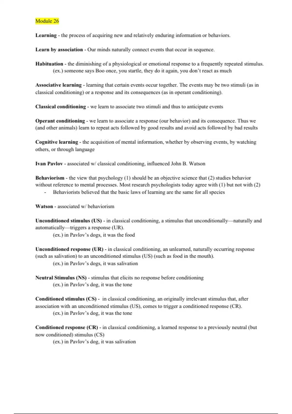 These notes are from the meyers textbook. It covers the learning unit including classical conditioning, operant conditioning, observational learning, etc.