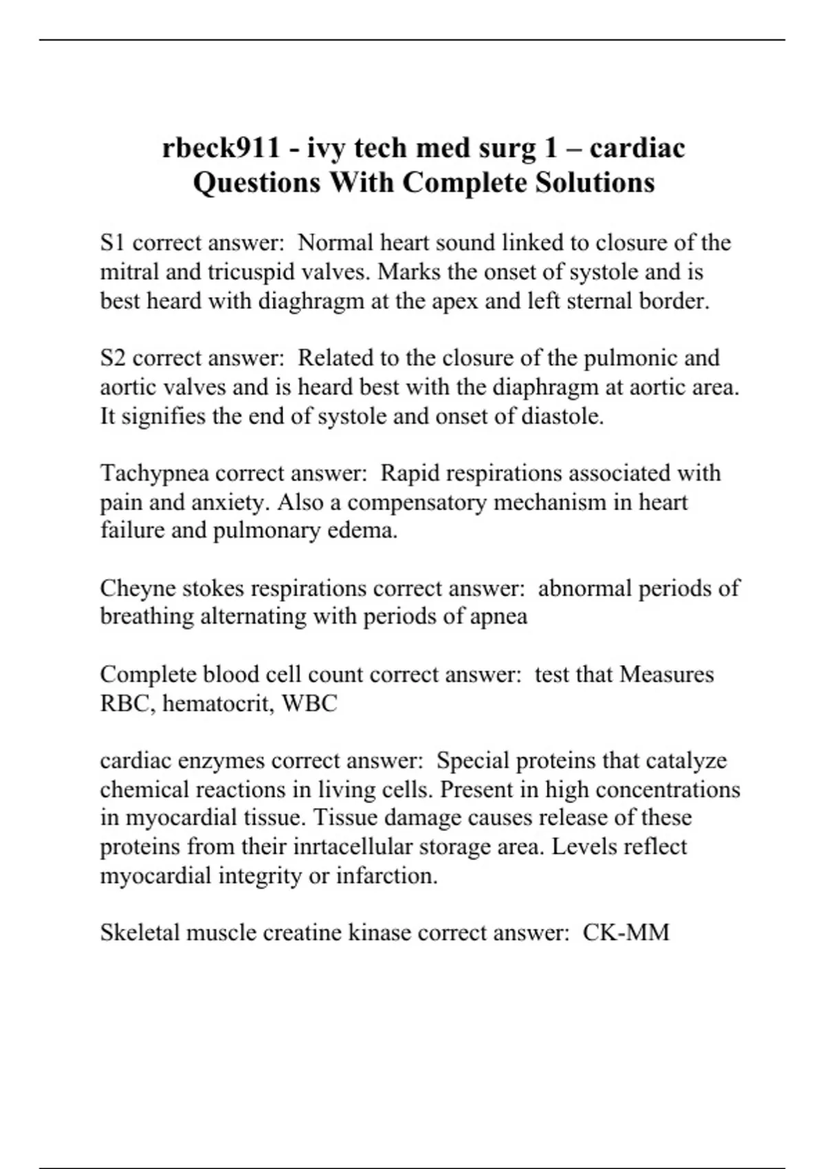 rbeck911 - ivy tech med surg 1 – cardiac Questions With Complete Solutions