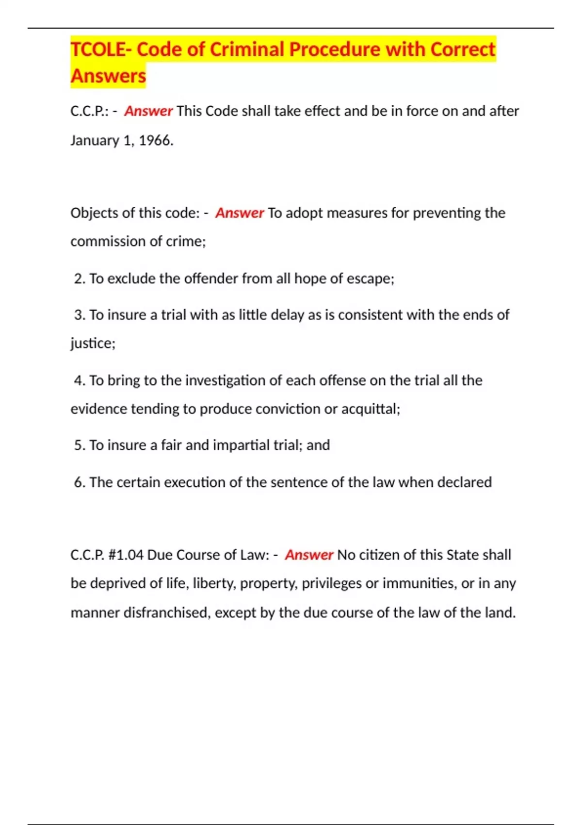 TCOLE- Code of Criminal Procedure with Correct Answers