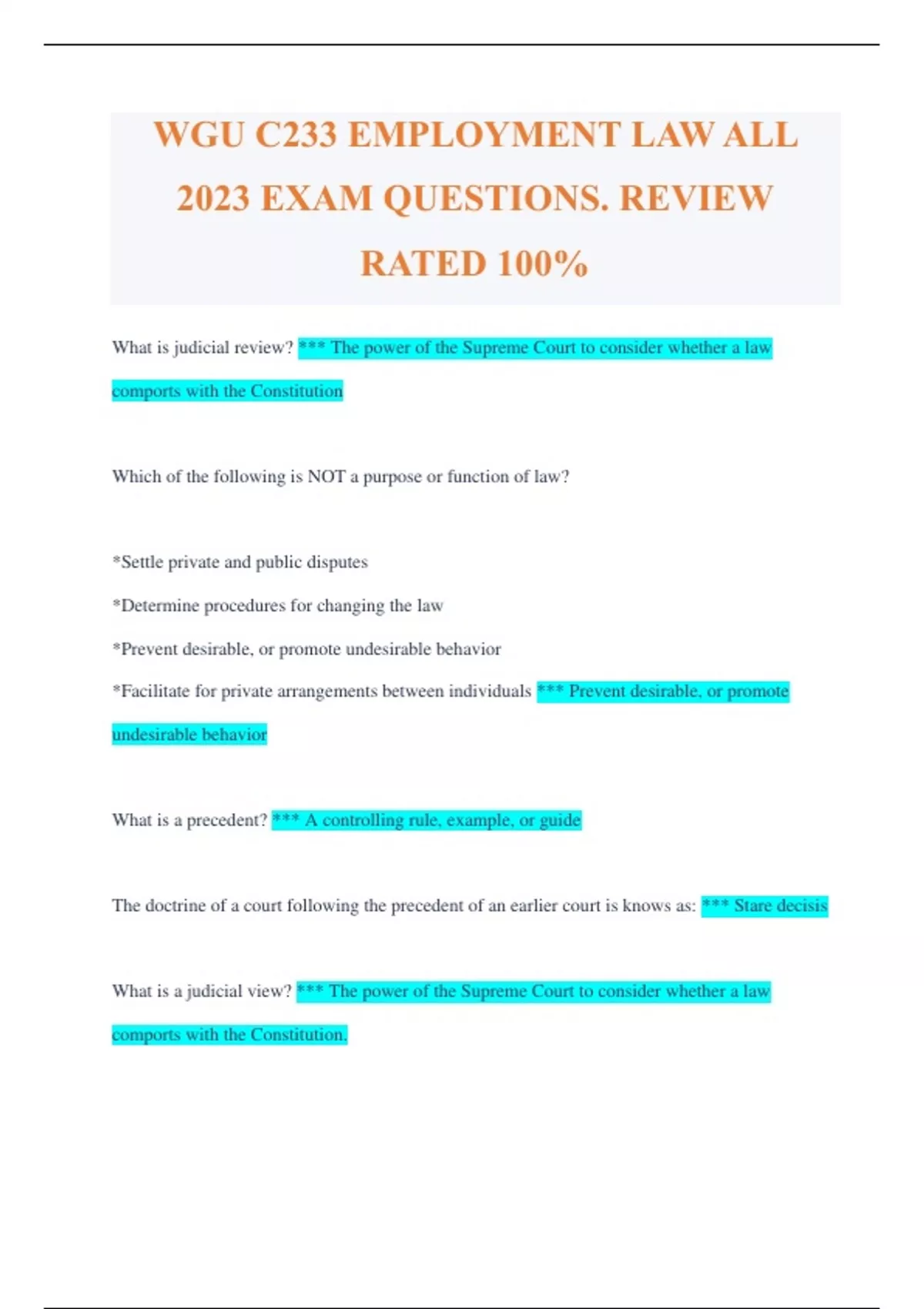 WGU C233 EMPLOYMENT LAW ALL 2023 EXAM QUESTIONS. REVIEW RATED 100%