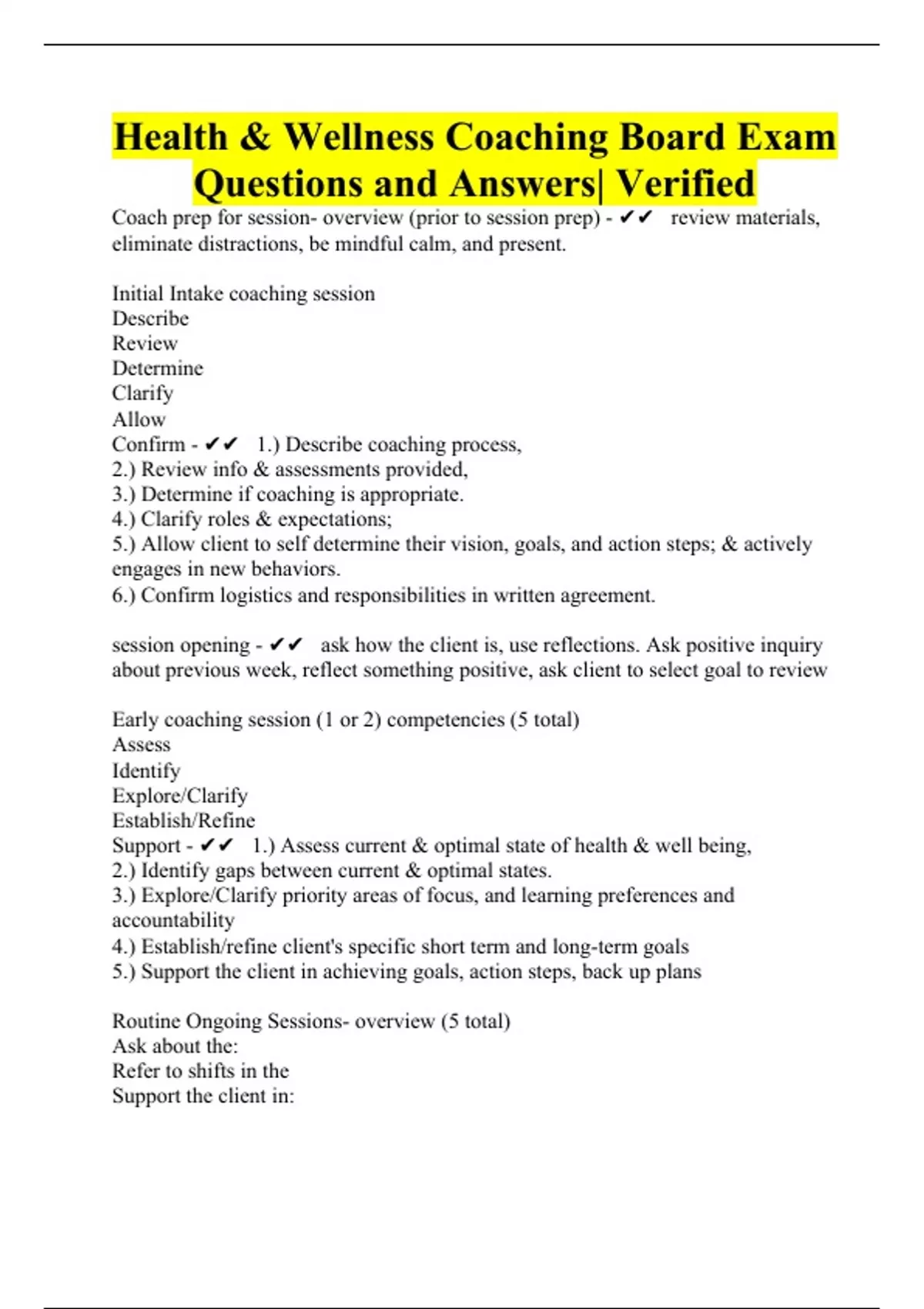 Health & Wellness Coaching Board Exam Questions and Answers| Verified
