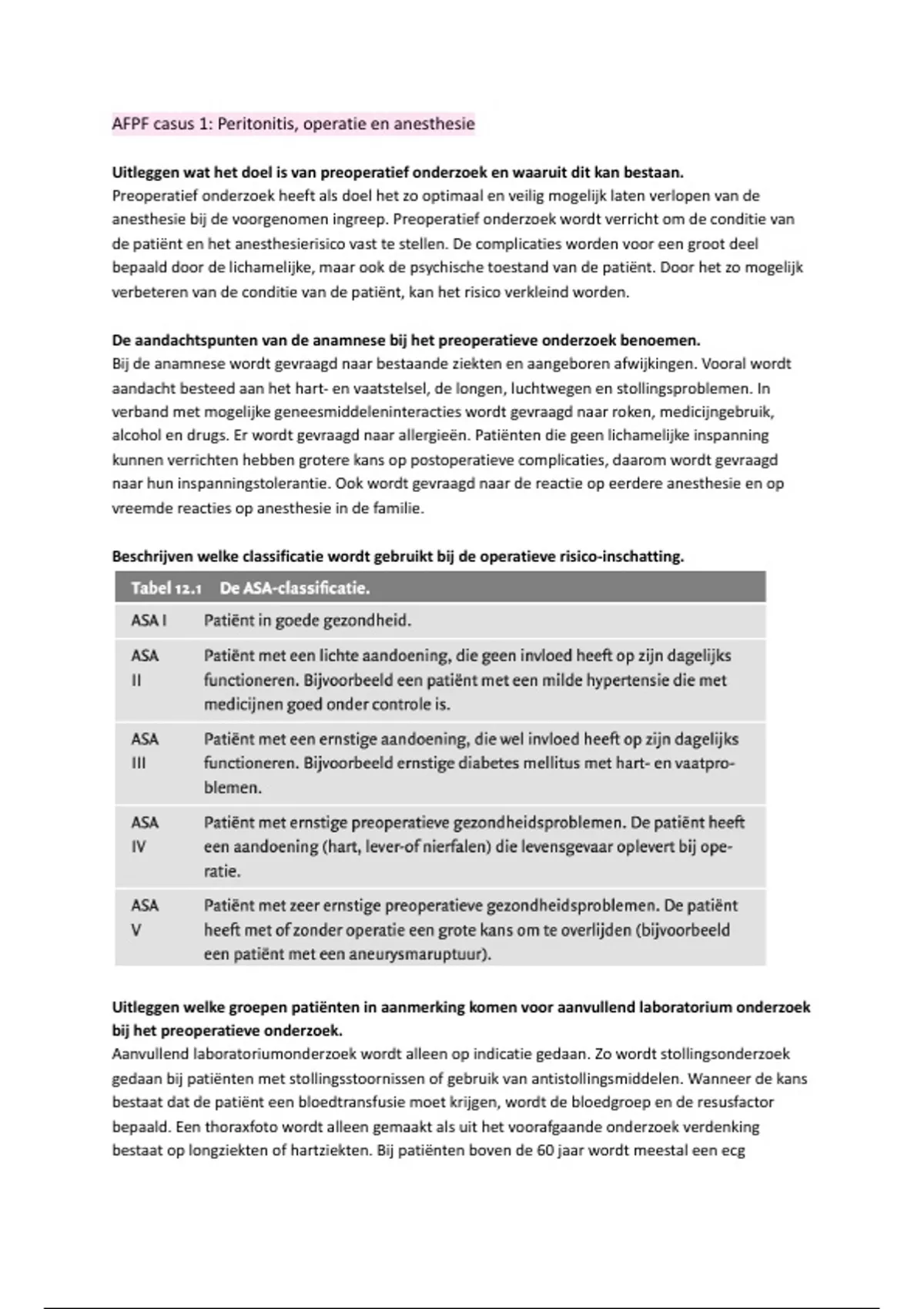 AFPF casus 1: Peritonitis, operatie en anesthesie