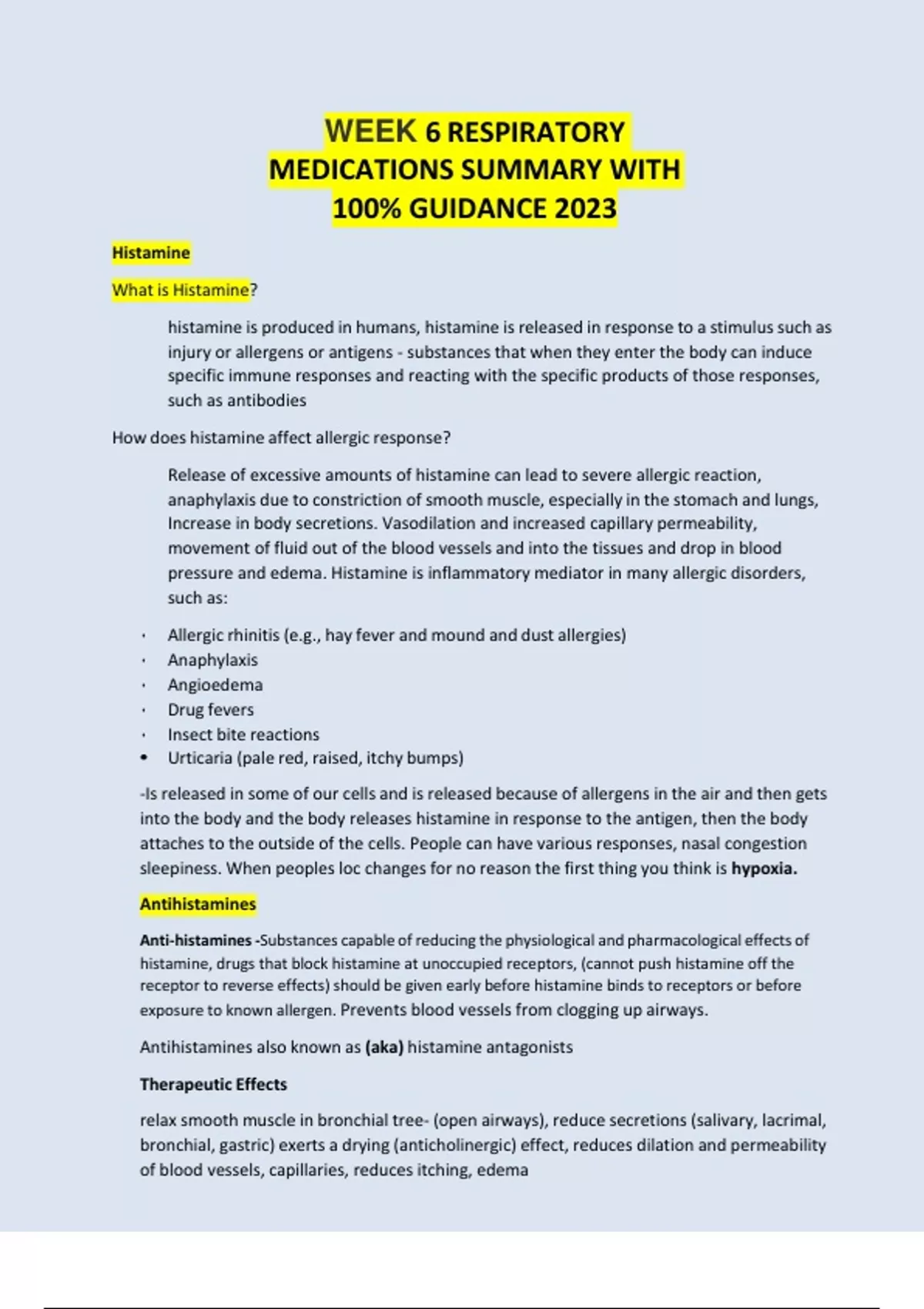 WEEK 6 RESPIRATORY MEDICATIONS SUMMARY WITH 100% GUIDANCE 2023