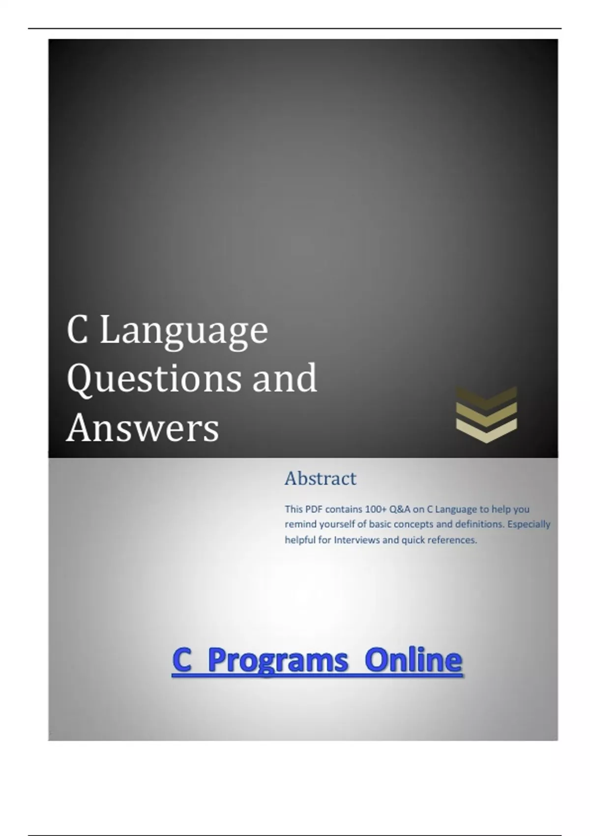 ANS: 1. What does static variable mean? Ans: Static variables are the variables which retain their values between the function calls. They are initialized only once their scope is within the function in which they are defined. 2. What is a pointer? Ans: Pointers are variables which stores the address of another variable. That variable may be a scalar (including another pointer), or an aggregate (array or structure). The pointed-to object may be part of a larger object, such as a field of a structure or an element in an array. 3. What are the uses of a pointer? Ans: Pointer is used in the following cases i) It is used to access array elements ii) It is used for dynamic memory allocation. iii) It is used in Call by reference iv) It is used in data structures like trees, graph, linked list etc. 4. What is a structure? Ans: Structure constitutes a super data type which represents several different data types in a single unit. A structure can be initialized if it is static or global. 5. What is a union? Ans: Union is a collection of heterogeneous data type but it uses efficient memory utilization technique by allocating enough memory to hold the largest member. Here a single area of memory contains values of different types at different time. A union can never be initialized. 6. What are the differences between structures and union? Ans: A structure variable contains each of the named members, and its size is large enough to hold all the members. Structure elements are of same size. A union contains one of the named members at a given time and is large enough to hold the largest member. Union element can be of different sizes. 7. What are the differences between structures and arrays? Ans: Structure is a collection of heterogeneous data type but array is a collection of homogeneous data types. Array 1-It is a collection of data items of same data type. 2-It has declaration only 3-.There is no keyword. 4- array name represent the address of the starting element. Structure 1-It is a collection of data items of different data type. 2- It has declaration and definition 3- keyword struct is used 4-Structure name is known as tag it is the short hand notation of the declaration.