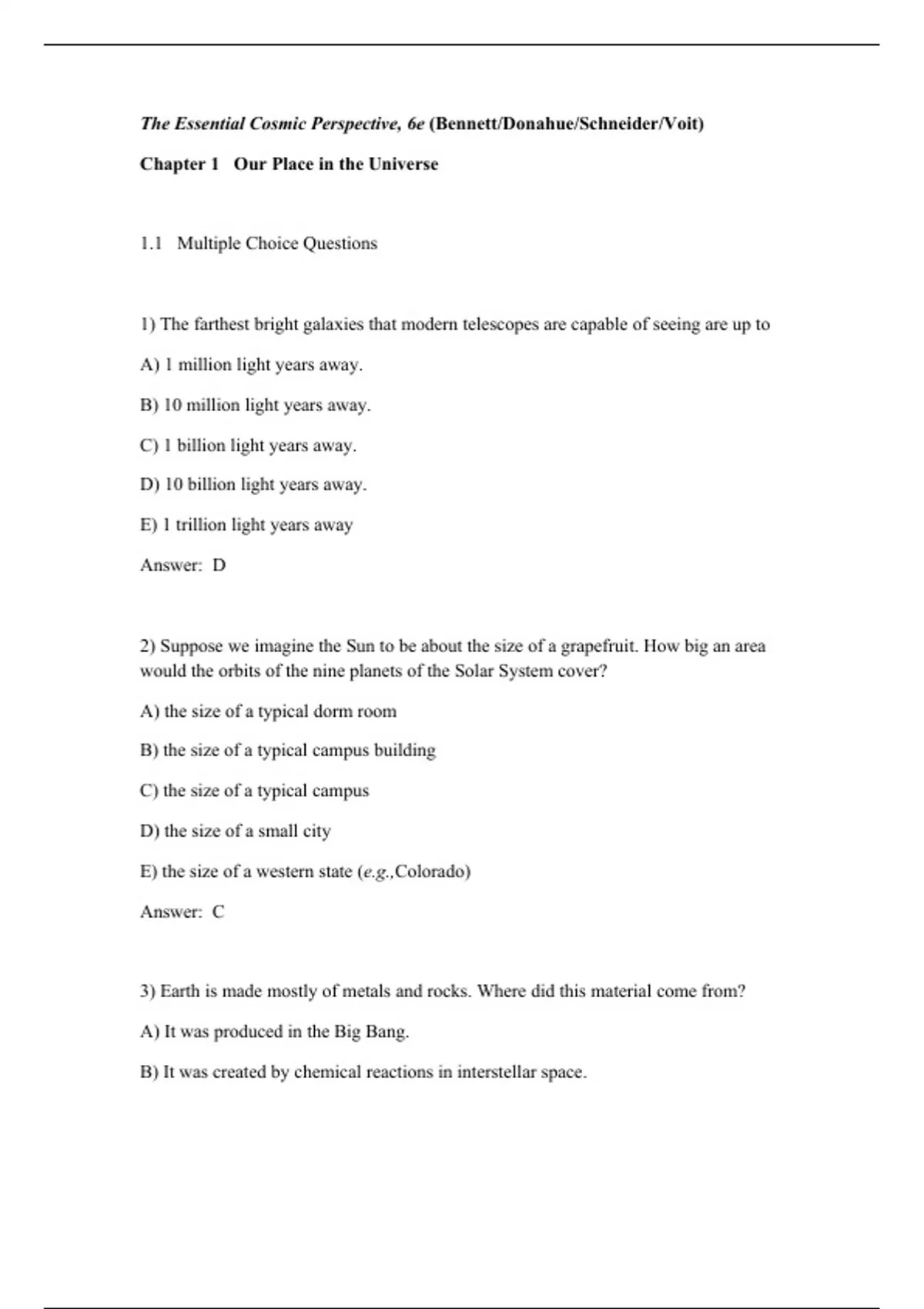 The Test Bank for [Essential Cosmic Perspective,Bennett,6e] is your ultimate ally for exam preparation. Offering practice exam questions based on official exams and providing detailed answers, it is designed to enhance your understanding and performance. Here's to acing your exams in !