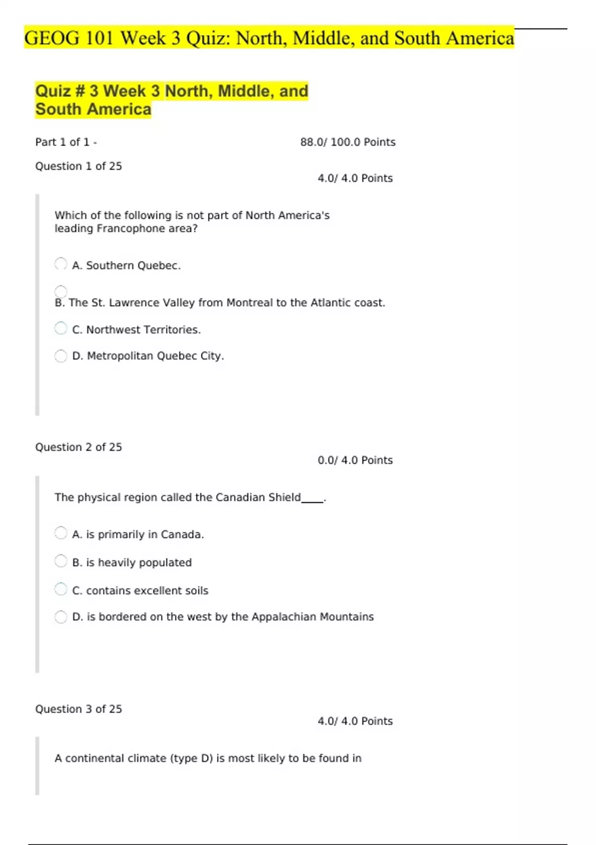 GEOG 101 Week 3 Quiz North, Middle, and South America. questions and answers} (2022/2023) (verified answers)