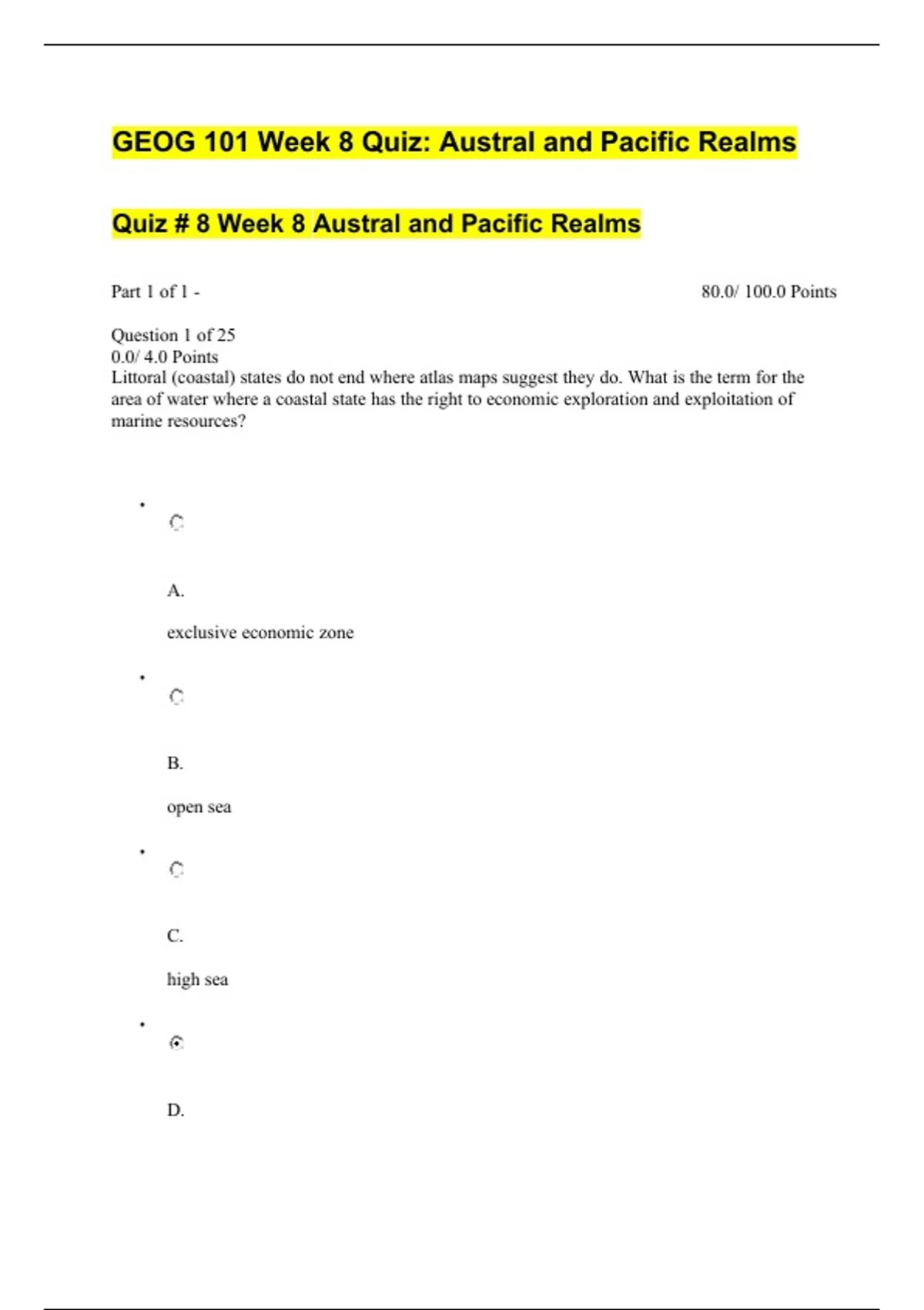GEOG 101 Week 8 Quiz Austral and Pacific Realms. questions and answers} (2022/2023) (verified answers)
