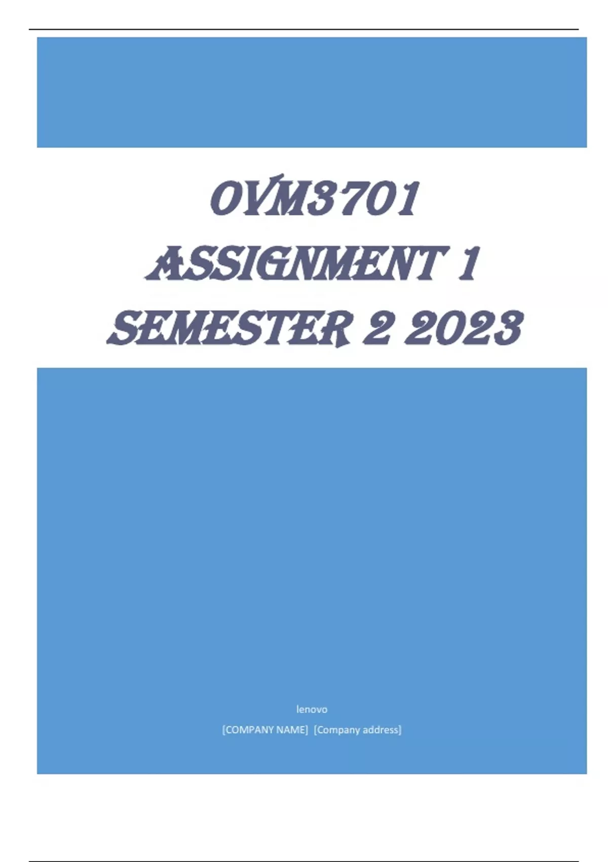 OVM3701 Assignment 1 Semester 2 2023