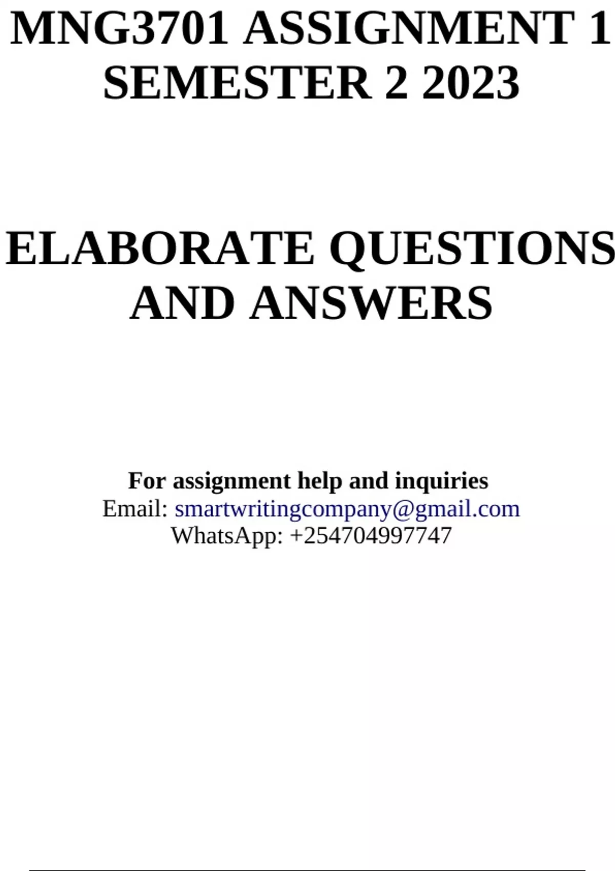 MNG3701 Assignment 1 Semester 2 2023 - DEU 25/8/2023