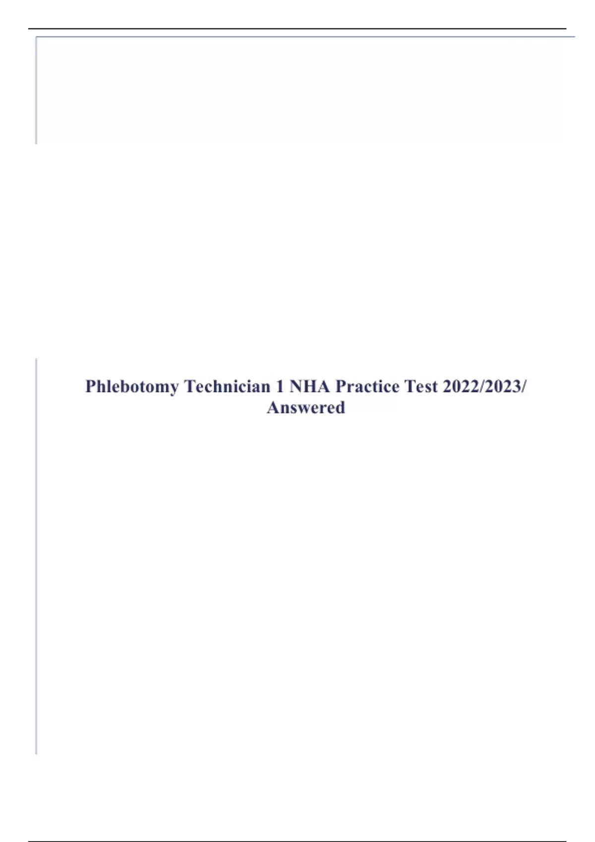 Phlebotomy Technician 1 NHA Practice Test 2022/2023/ Answered