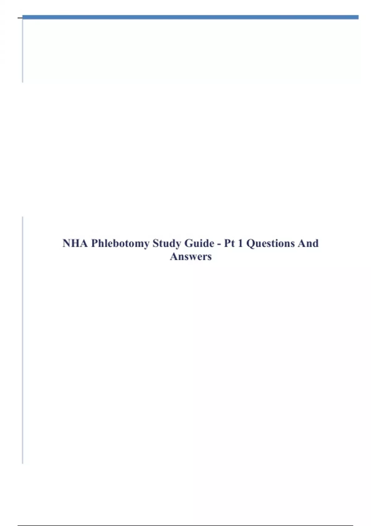 NHA Phlebotomy Study Guide - Pt 1 Questions And Answers