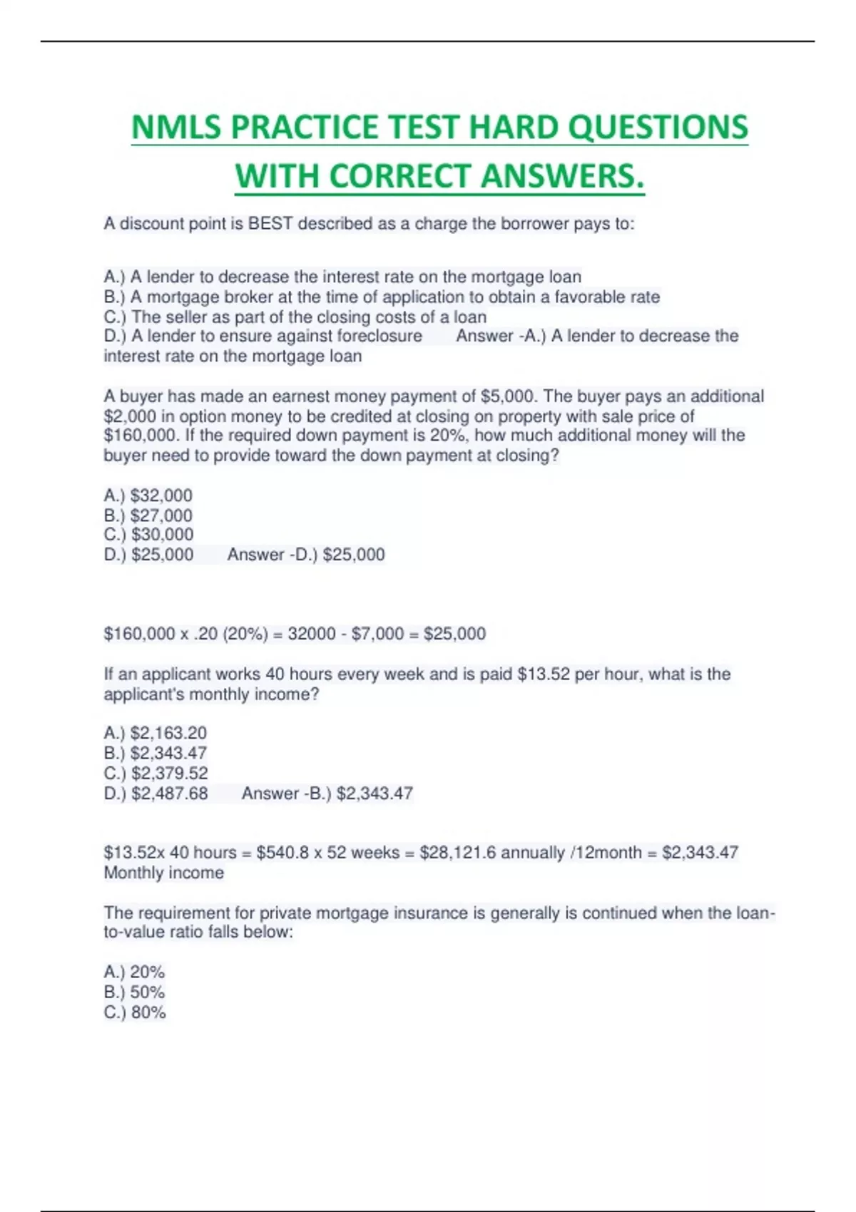 NMLS PRACTICE TEST HARD QUESTIONS WITH CORRECT ANSWERS.NMLS PRACTICE TEST HARD QUESTIONS WITH CORRECT ANSWERS.NMLS PRACTICE TEST HARD QUESTIONS WITH CORRECT ANSWERS.NMLS PRACTICE TEST HARD QUESTIONS WITH CORRECT ANSWERS.NMLS PRACTICE TEST HARD QUESTIONS WITH CORRECT ANSWERS.NMLS PRACTICE TEST HARD QUESTIONS WITH CORRECT ANSWERS.V