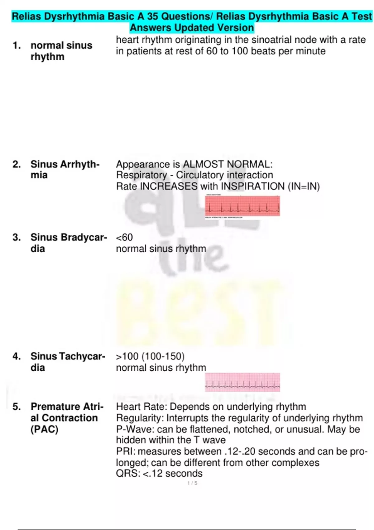 Relias Dysrhythmia Basic A 35 Questions/ Relias Dysrhythmia Basic A Test Answers Updated Version