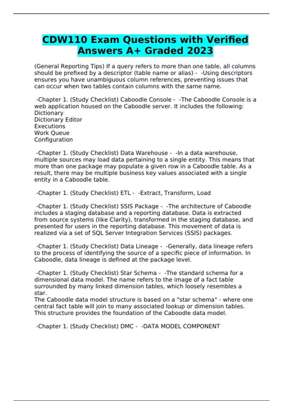 CDW110 Exam Questions with Verified Answers A+ Graded 2023