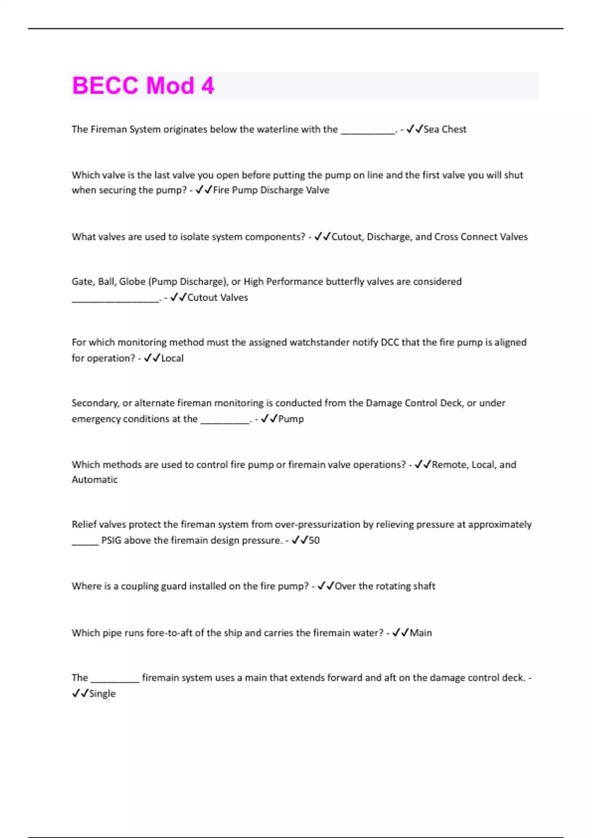 BECC Mod 4 | 70 Questions and Answers with complete solution