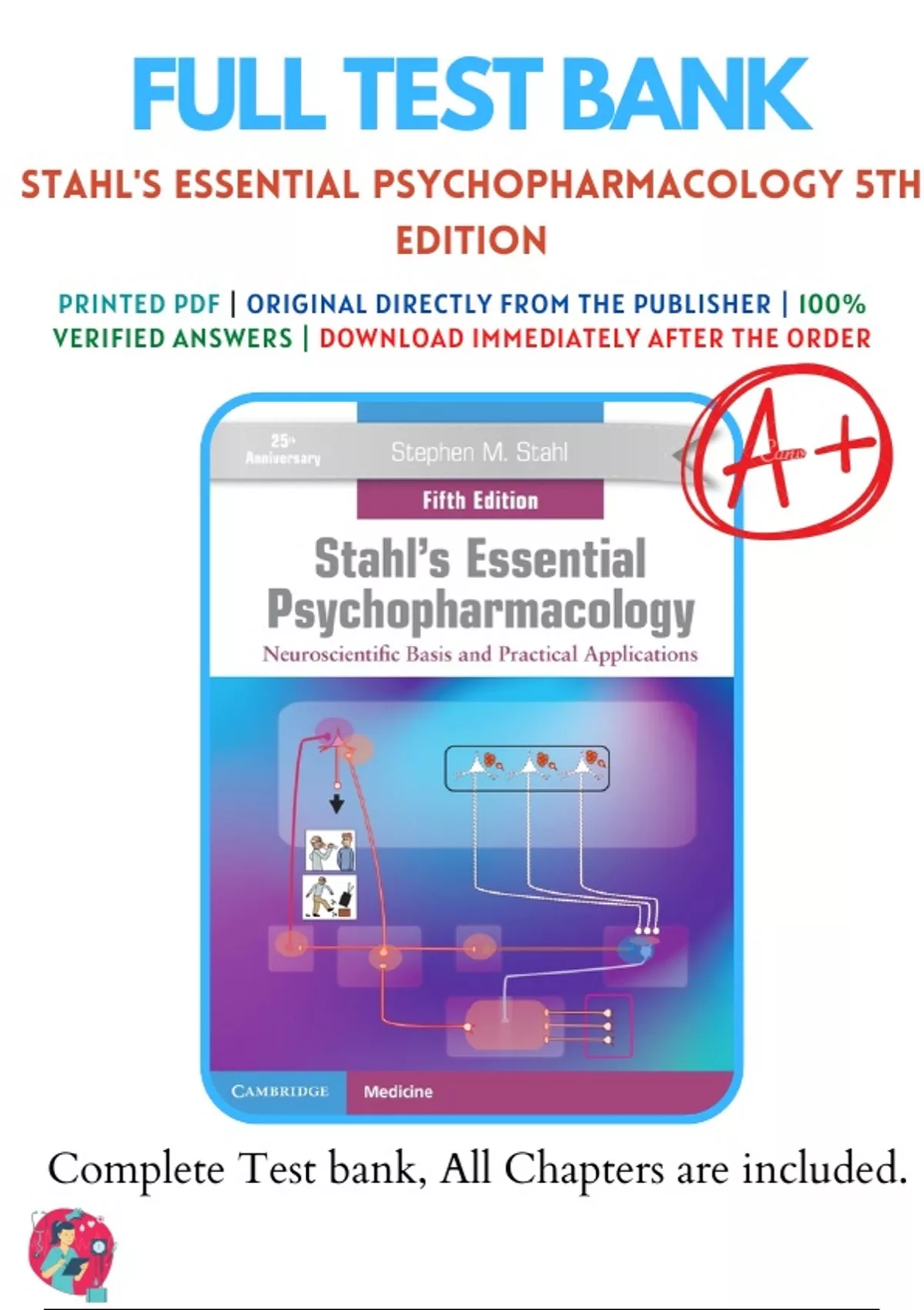 Test Banks For Stahl's Essential Psychopharmacology 5th Edition by Stephen M. Stahl, 9781108838573, Chapter 1-13 Complete Guide