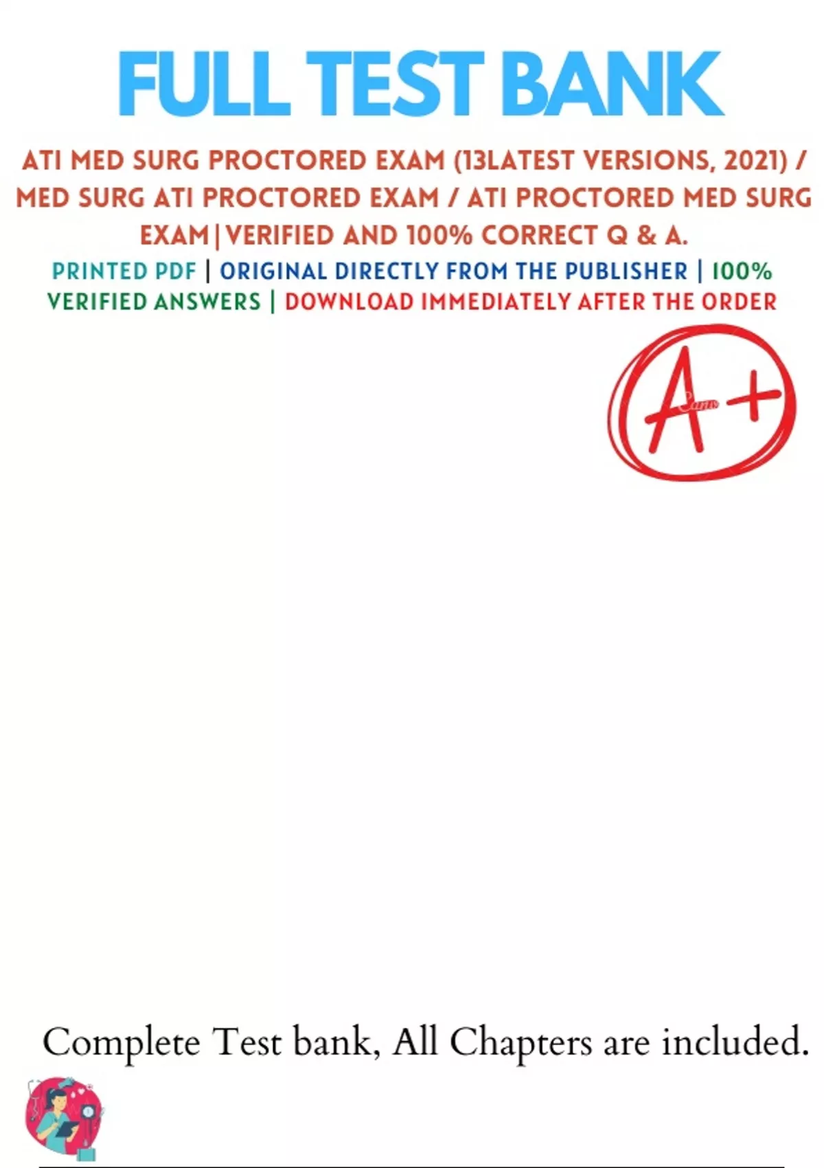 ATI MED SURG PROCTORED EXAM (13LATEST VERSIONS, 2021) / MED SURG ATI PROCTORED EXAM / ATI PROCTORED MED SURG EXAM|Verified and 100% Correct Q & A.
