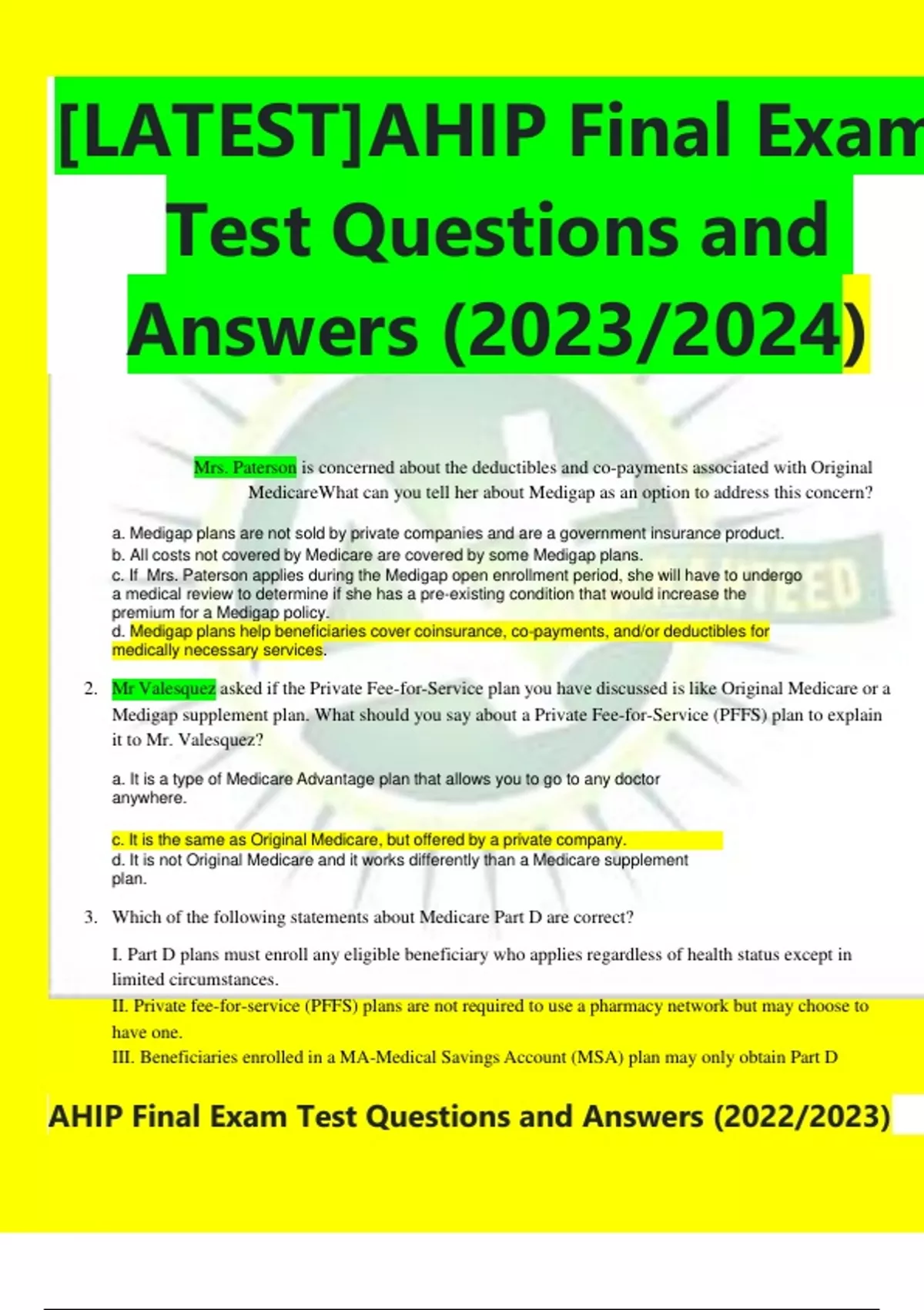 AHIP Final Exam Test Questions and Answers (2022/2023)