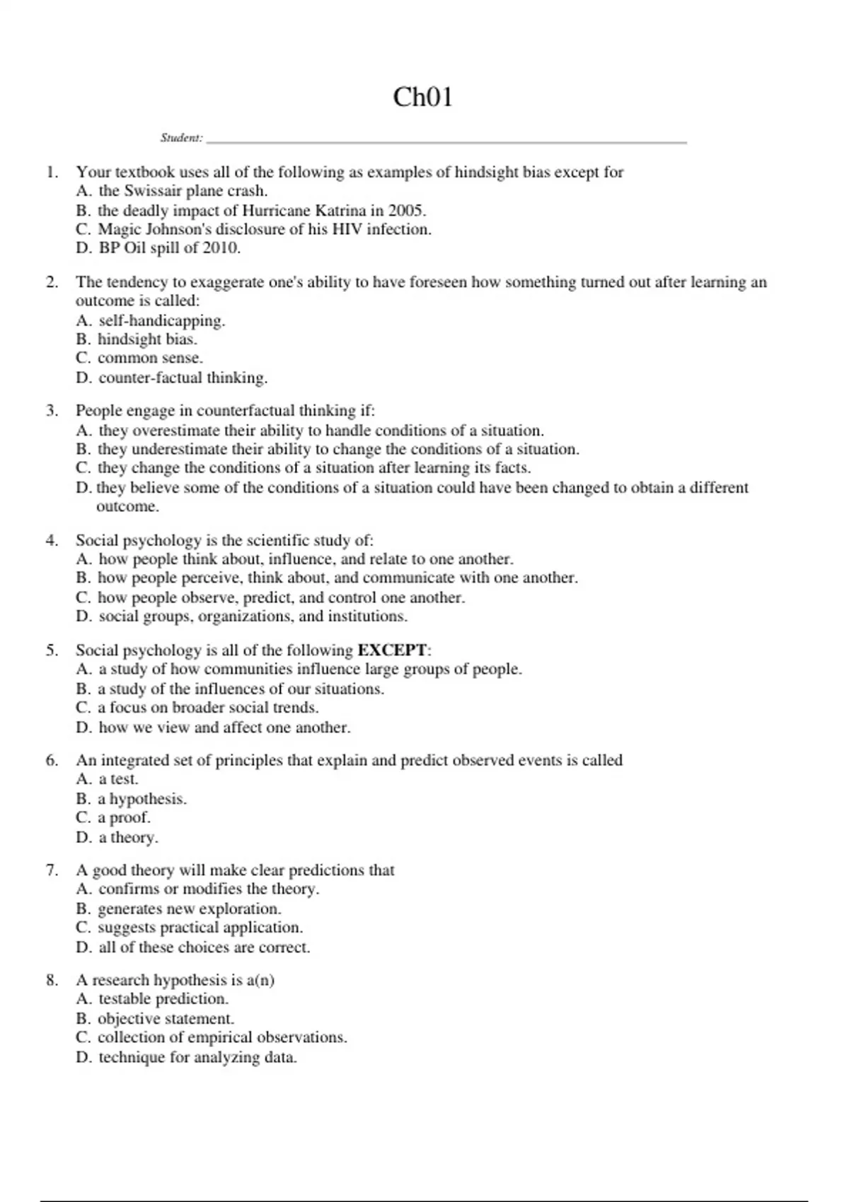Want to pass your class with ease? The Test Bank for [Exploring Social Psychology,Myers,4th Canadian edition] is your answer. Featuring practice exam questions and the official exams and answers, is your year to shine.