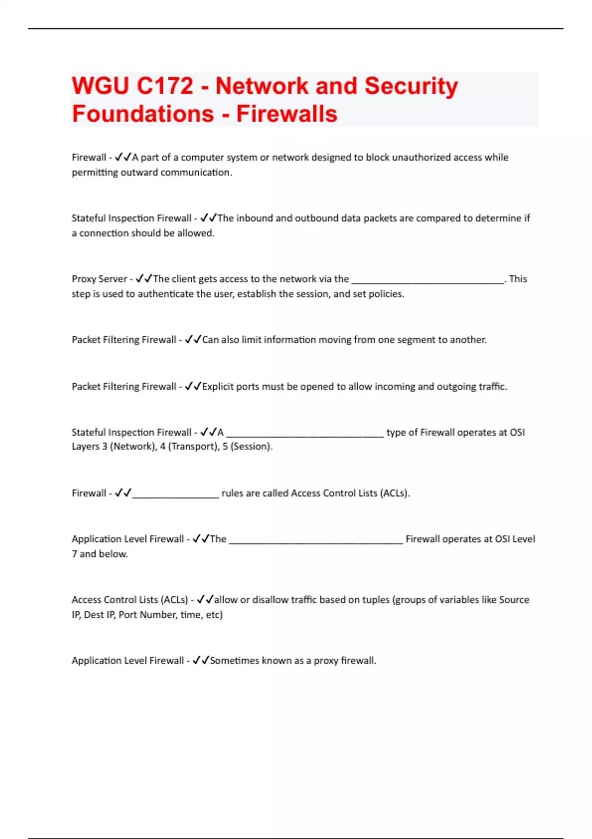 WGU C172 - Network and Security Foundations - Firewalls| Questions with 100% correct Answers | Verified