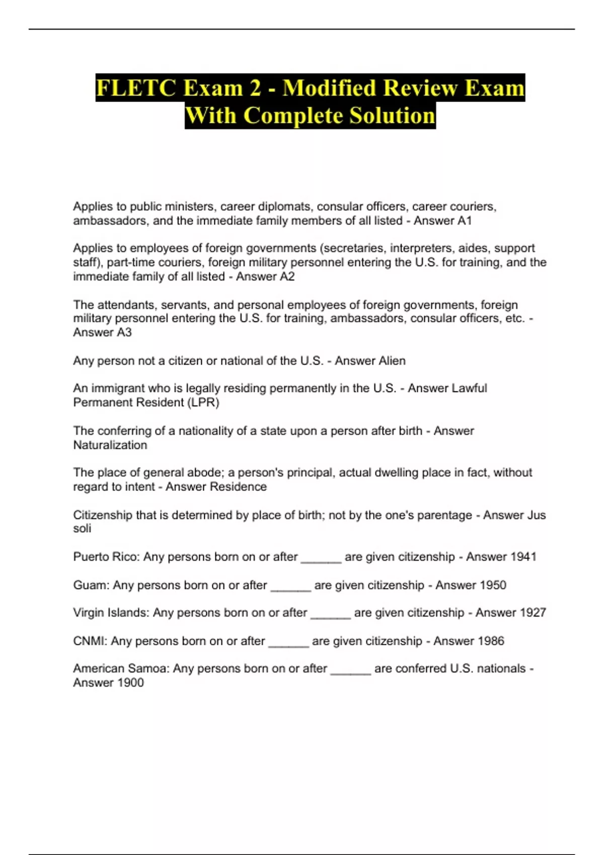FLETC Exam 2 - Modified Review Exam With Complete Solution...