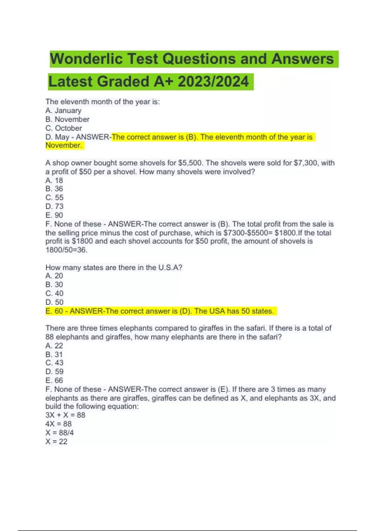 Wonderlic Test Questions and Answers Latest Graded A+ 2023/2024