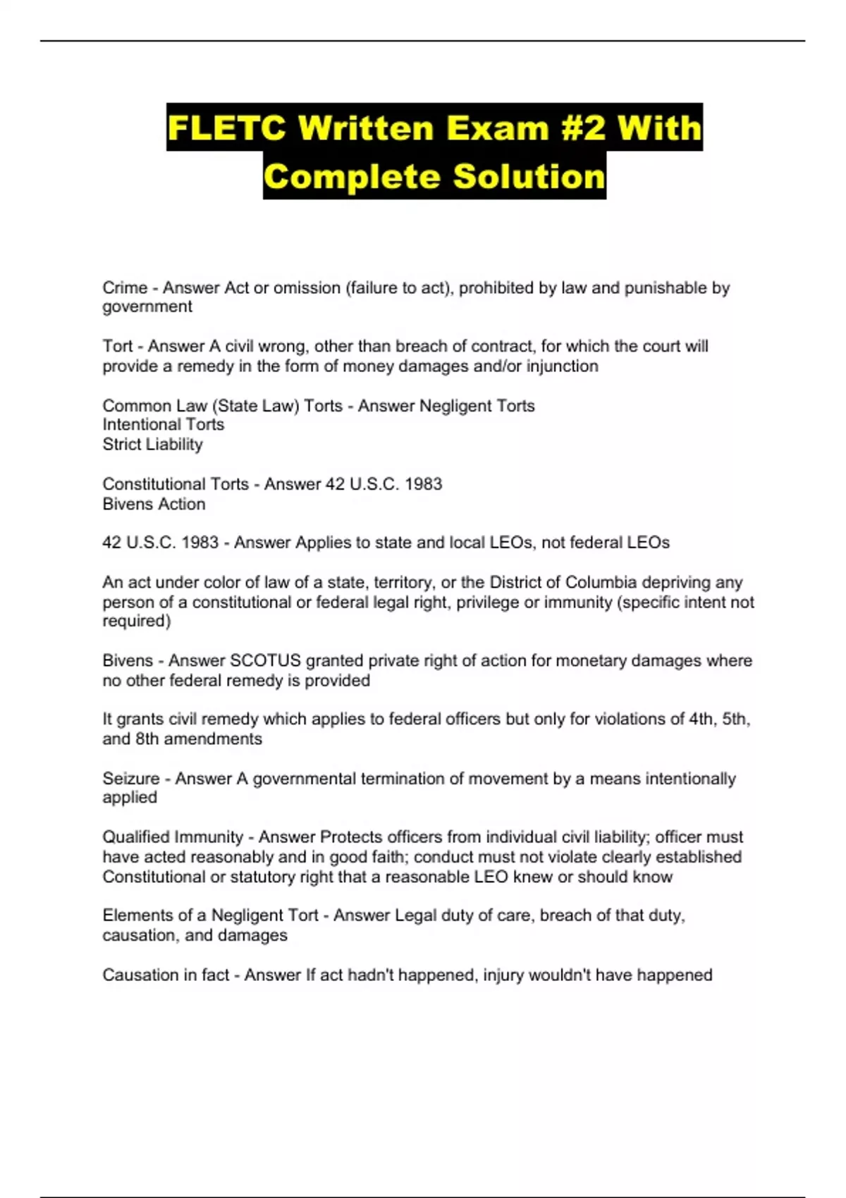 FLETC Written Exam #2 With Complete Solution...