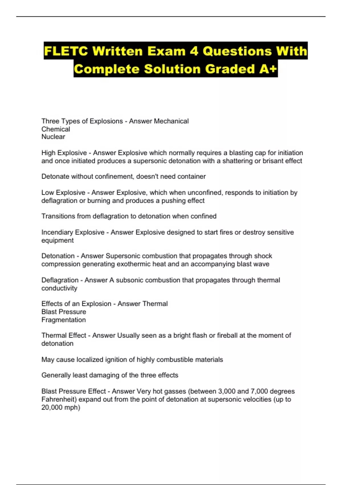 FLETC Written Exam 4 Questions With Complete Solution Graded A+...