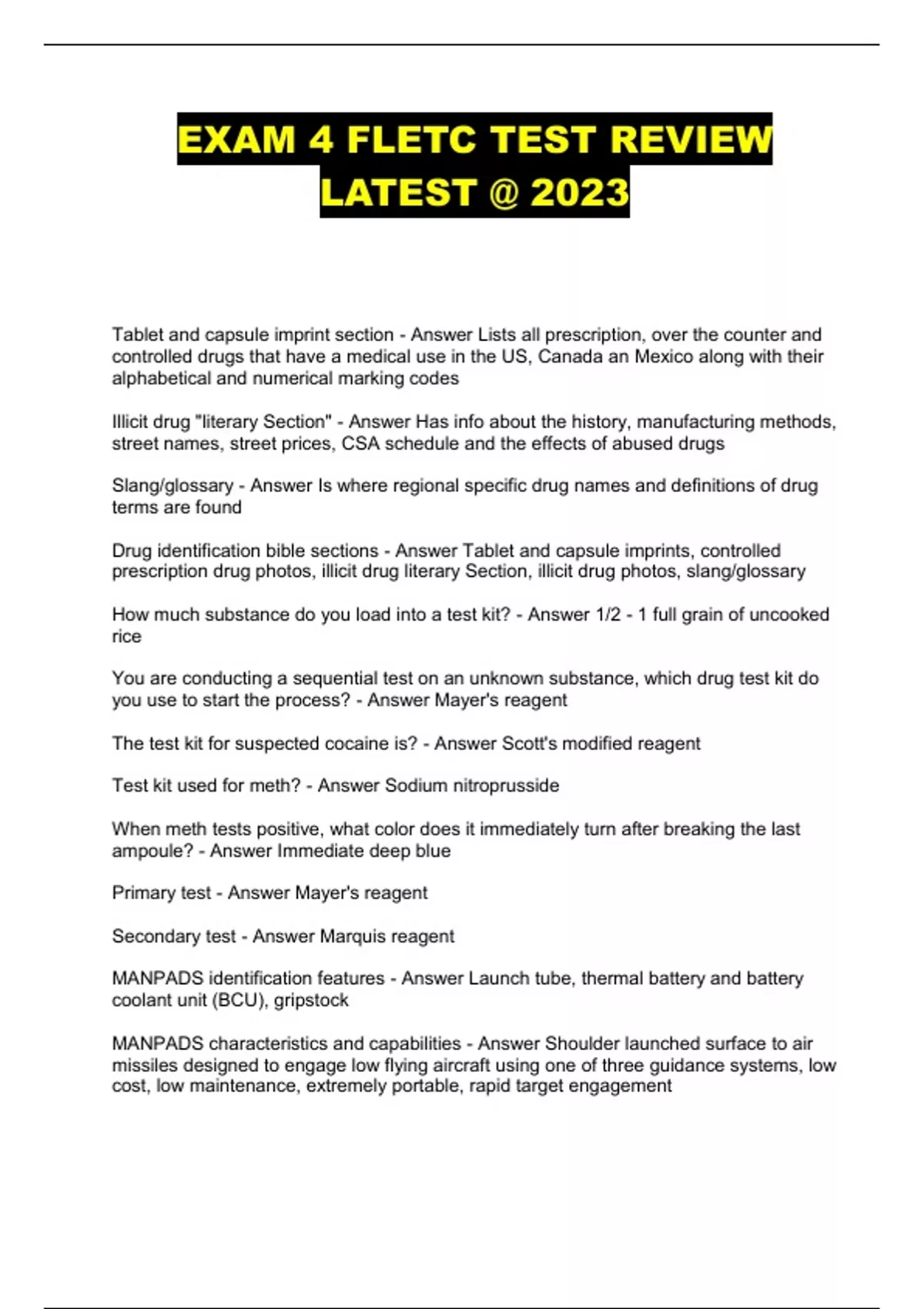EXAM 4 FLETC TEST REVIEW LATEST @ 2023...