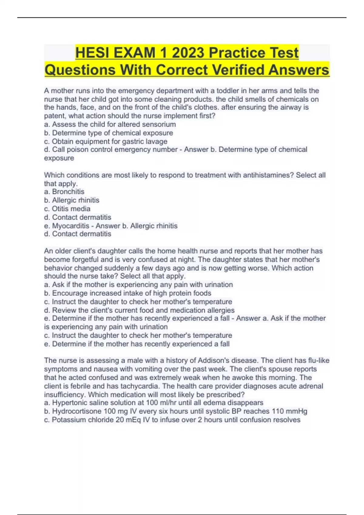 HESI EXAM 1 2023 Practice Test Questions With Correct Verified Answers