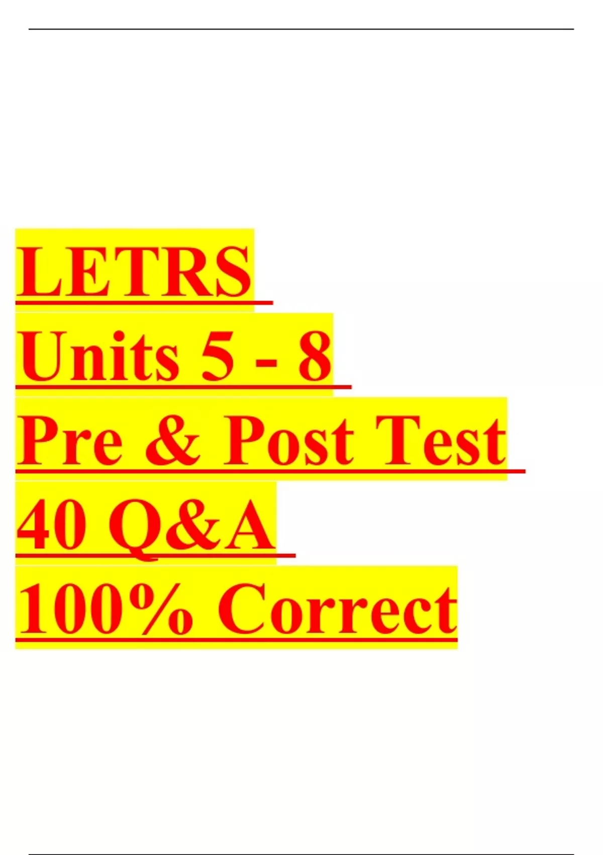 LETRS Units 5 - 8 Pre & Post Test, Answered
